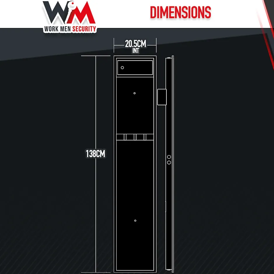 ARMOIRE A FUSILS AVEC BOITE A MUNITIONSDimensions extérieures: 315X205X1380 MMDimensions intérieures: 310X155X1260 MMEspace de rangement pouvant accueillir 5 fusilsEpaisseur de la porte: 3mmEpaisseur des parois: 2mmAvec coffre à fermeture à clé pour ranger les munitionsHomologué pour les armes de catégories A, B, C, DLivrée avec 2 clés