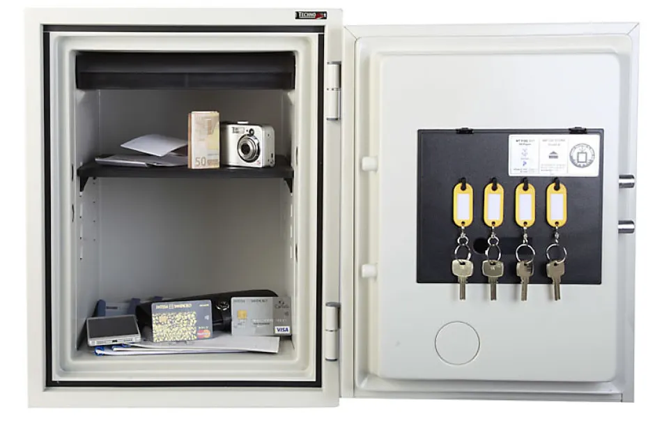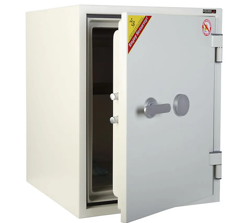Armoire ignifuge pour la protection des supports papier.Serrure à clé double panneton.Haute protection contre le feu : 60 minutes dans des conditions d’exposition à une température constante de 1010°C.Serrure de haute sécurité certifiée A2P (marque KABA MAUER commercialisée sous la référence 71111 PRESIDENT A/E – classe A/E – certificat n°CM 19.88) avec fermeture par clé à double panneton.Blocage par pênes au niveau des pivots empêchant le démontage de la porte en cas d’attaque des paumelles.Tablette sur crémaillère réglable et amovible.Le modèle 40 S NGS a 2 trous de fixation à la base.Peinture RAL 9002Dimensions intérieures : H 41 x L 30 x P 30 cm