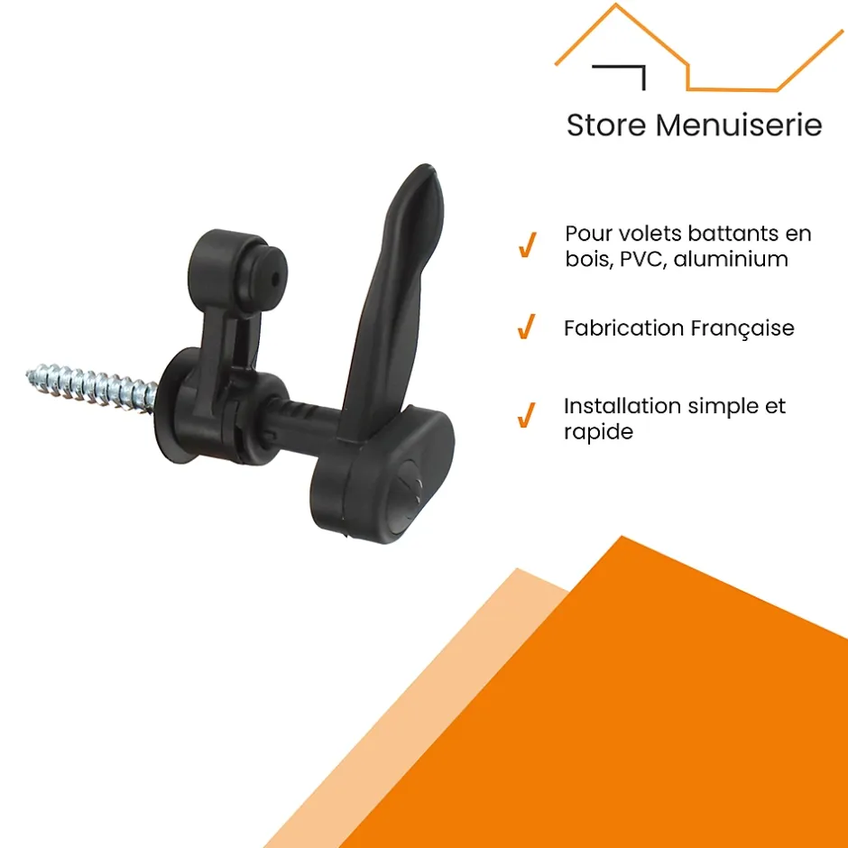 Caractéristiques techniques :• Matière : composite • Couleur / finition : noir mat • Longueur : 130 mm • Épaisseur de volet compatible : de 5 à 40 mm • Diamètre de perçage / vis : 10 mm • Type d’arrêt : Marseillais à butée amortissante • Usage : pour volets battants en bois, PVC ou aluminium • Réglage sans outils de la butée amortissante • Fabrication : France (fabrication française) Cet arrêt Marseillais vous apporte une solution durable et discrète pour maintenir vos volets battants ouverts en toute sécurité. Grâce à sa butée amortissante intégrée, il minimise les chocs et protège vos menuiseries contre les contraintes liées au vent. Sa pose est simple, et sa finition noire élégante s’adapte à de nombreux styles de façade.