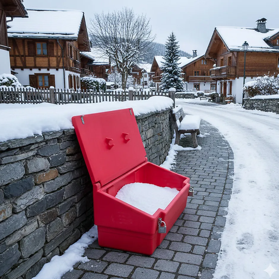 Bac à sable incendie/ à sel de déneigement d’une capacité de 100L.En polyéthylène haute densité traité anti UV. Des clips intégrés dans le couvercle permettent de fixer une pelle (pelle non fournie).Dans cette version, le bac est équipé de grenouillères cadenassables pour sécuriser le contenu du bac.Capacité : 100LLongueur : 98 cmHauteur : 45 cmLargeur : 50 cmPoids : 10.5 kgCouvercle pentuAvec cadenasBac à sable incendie, bac à sel de déneigementMatière : polyéthylène haute densitéTrès résistant aux chocsPlage d’utilisation : -30°C à +60°C100% recyclableMarque : Plast’Up RotomoulageFabrication Française