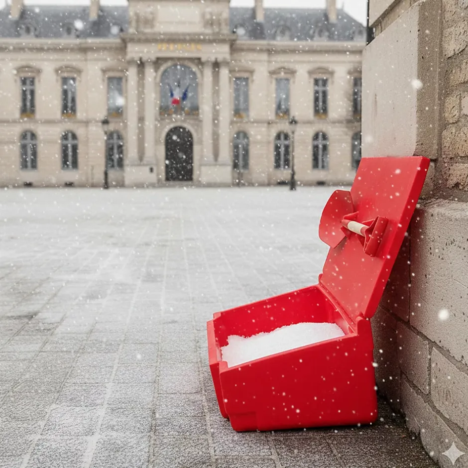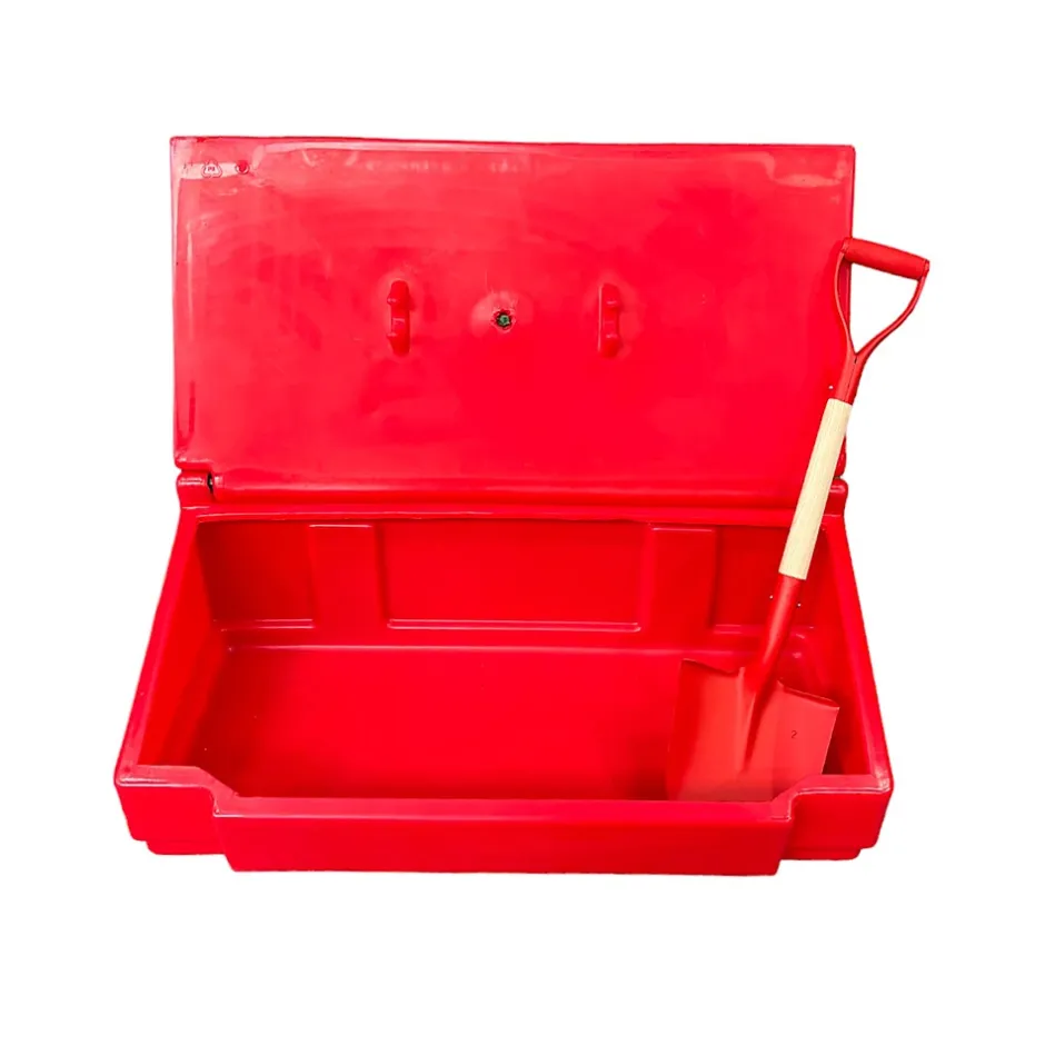 Bac à sable incendie, bac à sel de déneigement 100L avec pelle d’une capacité de 50L en polyéthylène haute densité traité anti UV. Des clips intégrés dans le couvercle permettent de fixer la pelle. Couvercle pentu.Lot de 10 bacs.Capacité : 50LLongueur : 98 cmHauteur : 50 cmLargeur : 34 cm.Poids : 9 kgPour stockage de sable, sel, multi-usagesMatière : polyéthylène haute densitéTrès résistant aux chocs. plage d’utilisation : -30°C à +60°C100% recyclable