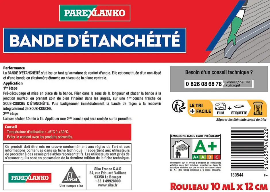 Bande d’étanchéité Parexlanko en rouleau 10ml x12cm avec rainure centrale pour pliage