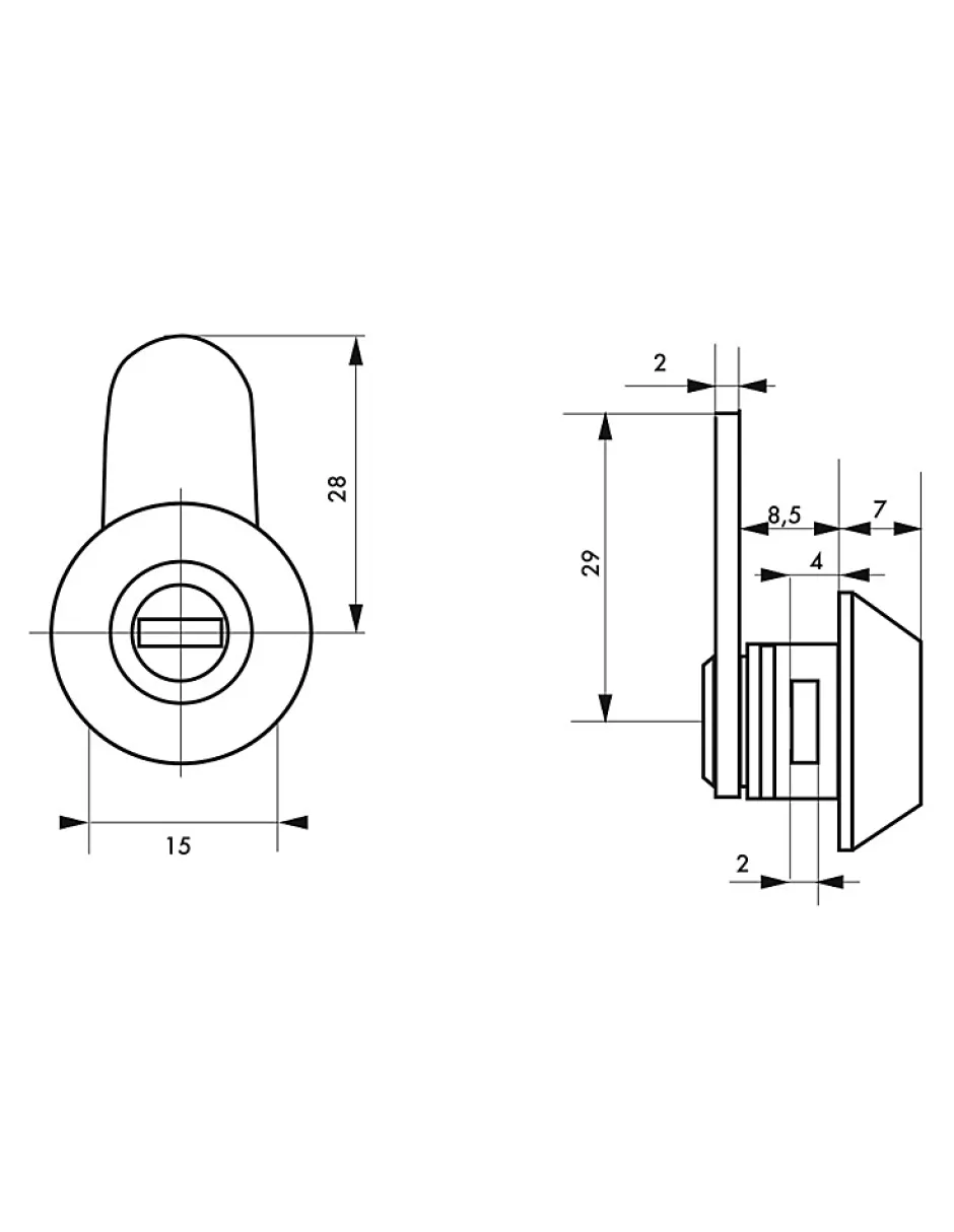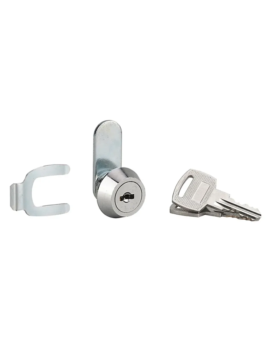 Corps alliage moulé. Mécanisme à paillettes. Came montée à 12 h. 2 clés nickelées. Clip de fixation.