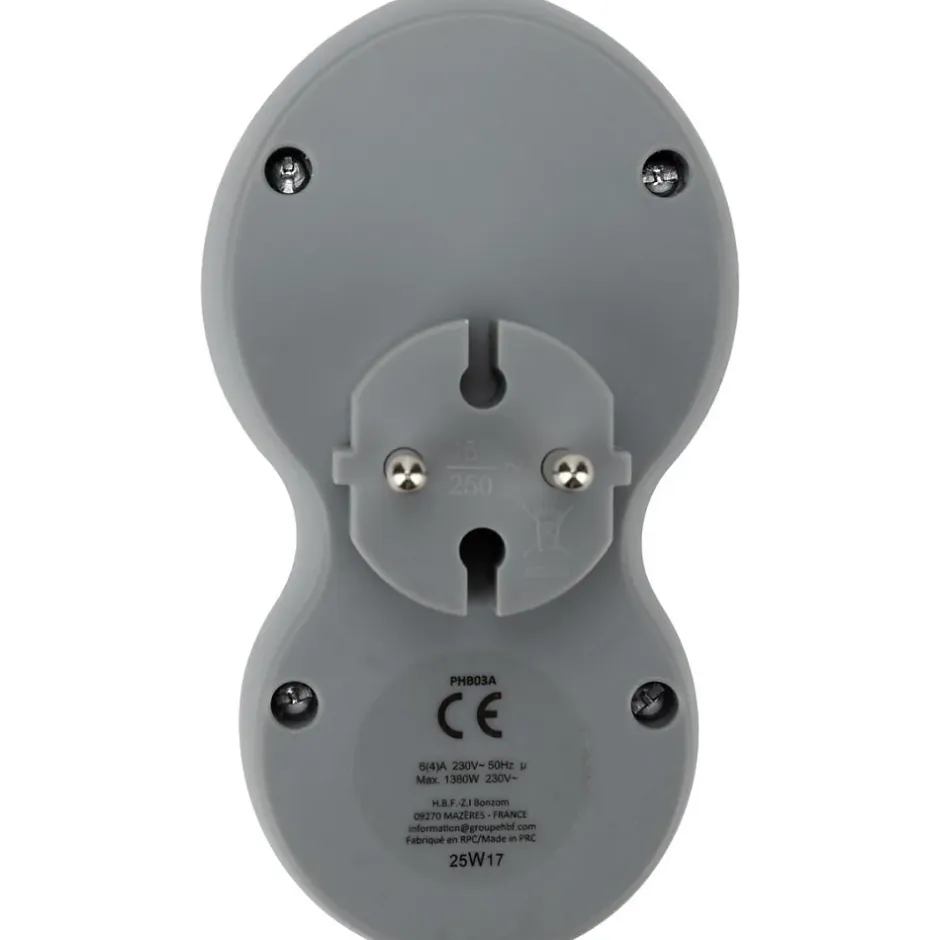 Caractéristiques de la biplite Bolea + minuterie 15min – Zenitech :Modèle : biplite BoleaCouleur(s) : blancAvec minuterie mécanique 15 minutesUne prise toujours sous tension et une prise programmableAvec voyant LED dédié de fonctionnementPrises orientées pour un branchement facilitéForme arrondie fonctionnelleHeures creuses indiquées sur le cadranInterrupteur marche/autoSortie : 230VBiplite disponible en 6A ou en 16APuissance 6A : 2x1380WPuissance 16A : 3680WLa biplite Bolea est l’outil parfait pour optimiser votre gestion énergétique au quotidien !Grâce à sa minuterie mécanique réglable toutes les 15 minutes, vous pouvez programmer facilement l’alimentation d’un appareil tout en bénéficiant d’une prise toujours sous tension pour un usage simultané. Ses prises orientées facilitent le branchement, et son cadran intuitif met en évidence les heures creuses pour une gestion encore plus efficace.Dotée d’un voyant LED dédié et d’un interrupteur marche/auto, elle offre un contrôle simple et précis. Disponible en versions 6A (1380W) et 16A (3680W), cette biplite combine praticité et performance avec un design arrondi et fonctionnel qui s’intègre à tous les intérieurs.