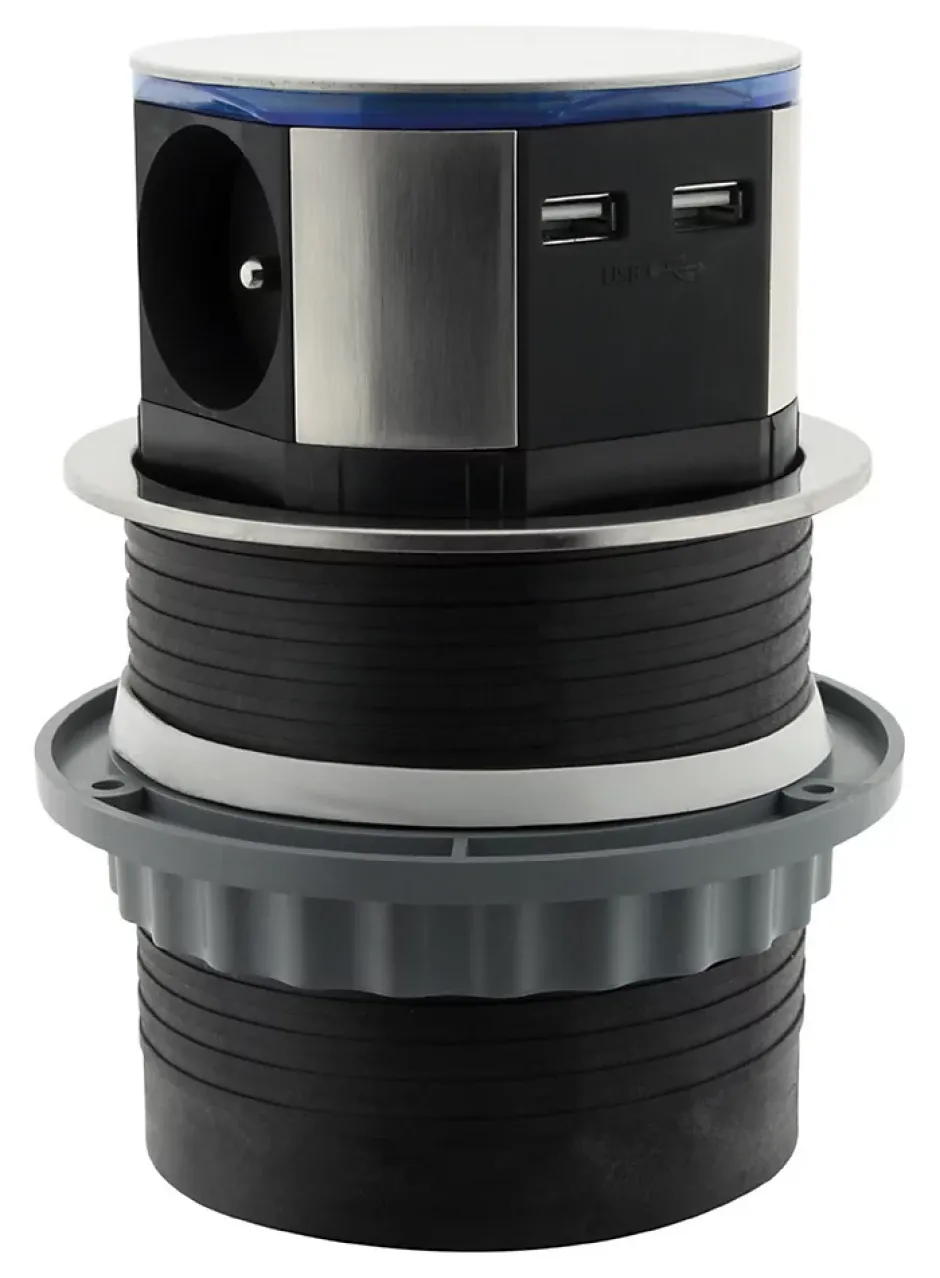 Optimisez votre espace de travail ou de vie avec le bloc multiprise encastrable OTIO. Alliant élégance et fonctionnalité, il se fond discrètement dans votre plan de travail ou bureau grâce à son système escamotable innovant. D’un simple geste, il s’ouvre pour offrir 3 prises 16A 2P+T et 2 ports USB, puis se referme pour libérer de l’espace.