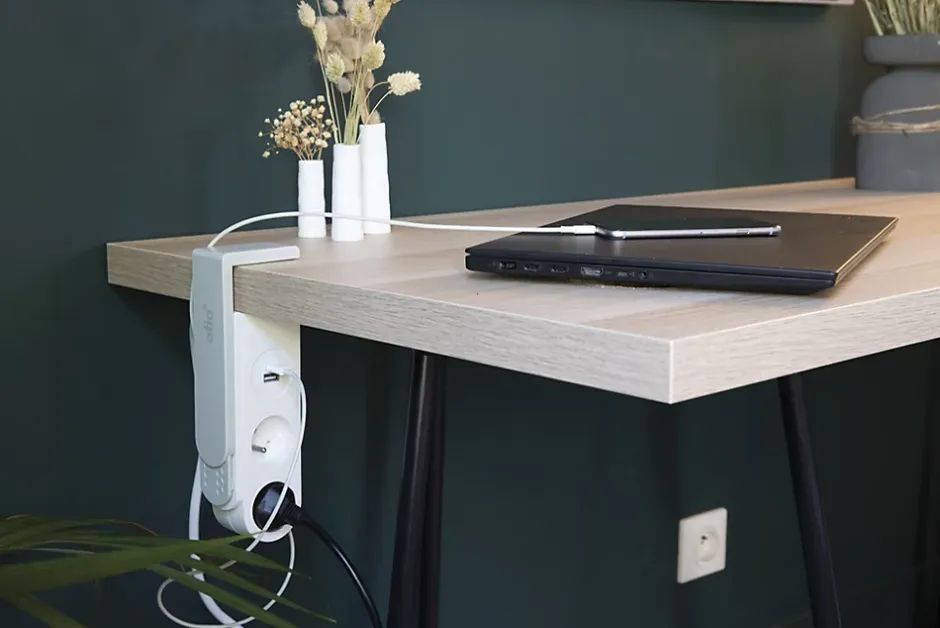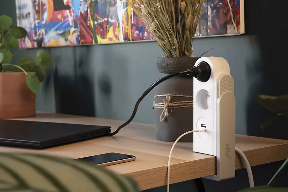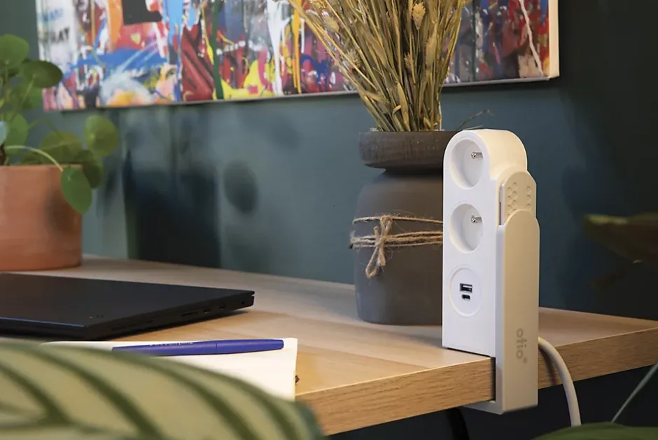 - La multiprise clipsable Gekko Otio se clipse discrètement sur le bureau pour un encombrement minimal