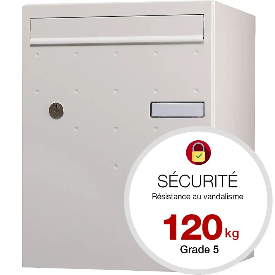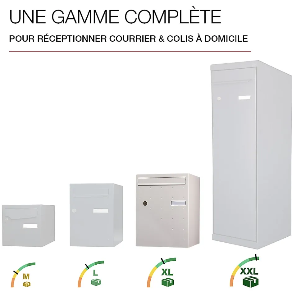 Boite à colis Atout, conçue pour répondre à tous vos besoins en matière de livraison sécurisée. Grâce à son volume optimisé, elle peut accueillir jusqu’à 70% des colis du e-commerce, pour vous permettre de réceptionner tous vos colis, même volumineux, directement à domicile, en toute tranquillité. Boite aux lettres et à colis normalisée 1 porte Renz. Corps en acier revêtu permettant de réceptionner votre courrier et vos colis volumineux. Volume optimisé : permet de recevoir jusqu’à 70% des colis du e-commerce. Système de fermeture sécurisé par coulisse de verrouillage toute hauteur à 4 points d’ancrage, résistante à 120 kg d’arrachement. Pose facile. Boitier avec gouttière hydrofuge. Porte recouvrante en acier bi-métal avec un décor pointes de diamant équipée d’un volet aluminium et d’un porte-nom affleurant en polycarbonate. Serrure normalisée. Fixation murale, sur pied latéral, sur muret, ou en encastrement. Peinture poudre polyester sans plomb. Garantie anti-corrosion de 15 ans. Certifiée loi handicap. Dimensions intérieures (volume utile pour la réception de colis) : 327x476x362 – Dimensions extérieures : 370x500x400mm.Boite à colis avec un volume optimisé. Permet de recevoir jusqu’à 70% des colis du e-commerce. Garantie anti-corrosion de 15 ans. Système de fermeture sécurisé par coulisse de verrouillage toute hauteur à 4 points d’ancrage, résistante à 120 kg d’arrachement. Pose facile. Porte recouvrante en acier bi-métal avec un décor pointes de diamant équipée d’un volet aluminium.Photos non contractuelles, se référer au RAL pour le coloris.