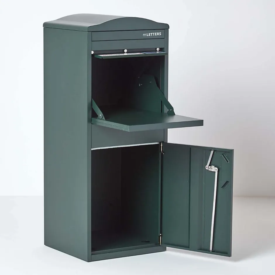 Recevez vos livraisons en toute sérénité avec la SMART PARCEL BOX™ grand format, une boîte à colis extérieure sécurisée conçue pour recevoir plusieurs colis par jour, même en votre absence. Haute de 104 cm, cette boîte aux lettres sur pied possède un compartiment supérieur pratique où les livreurs peuvent déposer vos colis et scanner un code-barres unique comme preuve de livraison. Pour amortir la chute des colis, une couche de PVC protectrice est intégrée à l’intérieur. Une fois déposés, vos colis restent en sécurité dans le compartiment inférieur, accessible uniquement grâce à votre clé personnelle. Fabriquée en acier galvanisé avec revêtement anti-rouille, cette boîte aux lettres résistante aux intempéries s’installe facilement devant votre maison. Les fixations sont incluses (vérifiez la compatibilité selon votre type de mur ou sol). Pratique, robuste et antivol, elle vous permet de recevoir vos colis en toute sécurité à tout moment, même lorsque vous êtes absent.