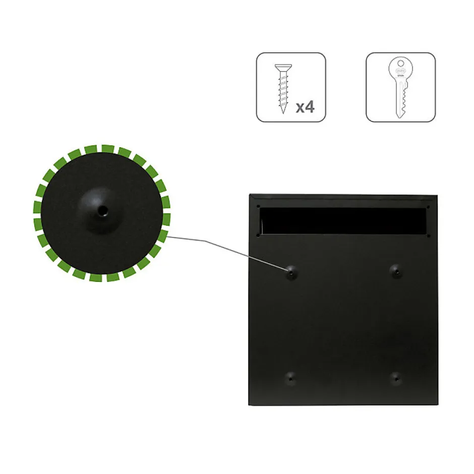Boîte aux lettres en acier avec ouverture à l’arrière. Pour l’intérieur. Inclut les vis pour l’installation.