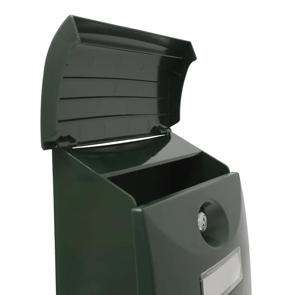 Boîte aux lettres en plastique. Rainure supérieure. Porte verrouillable.