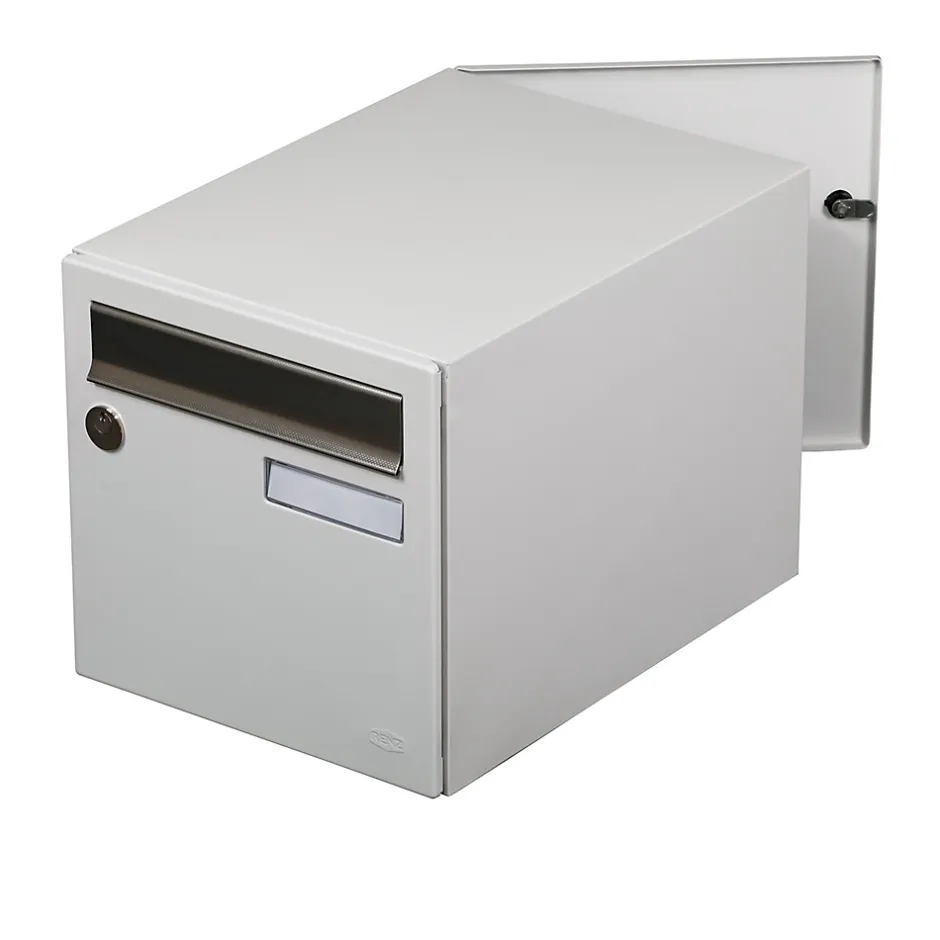 Produit sur-mesure : ce produit spécial est fabriqué à la commande. Boite aux lettres normalisée 2 portes Renz Allure, design épuré. Permet de recevoir jusqu’à 45% des colis du e-commerce. Boitier avec gouttière hydrofuge, porte recouvrante équipée d’un volet en inox structuré amorti pour un meilleur confort acoustique, et d’un porte-nom affleurant en polycarbonate. Serrure normalisée avec 2 clés. Plancher ergonomique pour un retrait facile du courrier. Peinture poudre polyester sans plomb. Garantie anti-corrosion de 15 ans. Anti-vandale grade 3, résistant jusqu’à 60 kg d’arrachement. Certifiée loi handicap. Dimensions : 285x285x400mm.Apportez une touche d’élégance devant votre maison : optez pour la boite aux lettres Allure 2 portes, au design épuré et moderne. Allure est dotée d’un volet en inox structuré et amorti, qui permet d’offrir un bon confort acoustique. Le modèle 2 portes d’Allure possède une ouverture à l’avant ainsi qu’à l’arrière. Cela permet de récupérer son courrier et ses colis depuis l’intérieur de sa résidence, si la boite est encastrée dans un mur par exemple. Sa gouttière hydrofuge permet de protéger efficacement votre courrier et vos colis même en cas de fortes pluies. Normalisée, la boite aux lettres Allure permet de réceptionner jusqu’à 45% des colis issus du e-commerce, directement chez vous. Elle dispose également d’un plancher ergonomique pour faciliter le retrait du courrier.Photos non contractuelles, se référer au RAL pour le coloris.