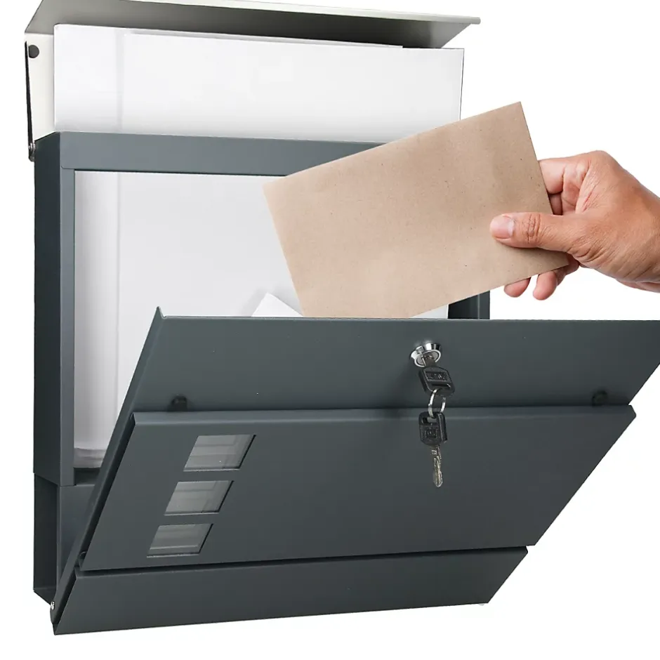 Ces boîtes aux lettres de ECD Germany en acier inoxydable robuste, revêtu par poudre et brossé, convainquent par leur design moderne et protègent efficacement votre courrier de l’humidité et de la saleté. Le revêtement de haute qualité est particulièrement durable et facile à entretenir et vous garantit une utilisation sans problème.Le grand casier à courrier, que vous pouvez fermer en toute sécurité à l’aide de deux clés fournies, est particulièrement pratique. D’autres avantages sont le rouleau de journaux intégré ainsi que la grande ouverture d’introduction.Le support de la boîte aux lettres est également fabriqué dans un matériau de qualité et bien fini, ce qui lui confère une grande longévité. L’acier inoxydable revêtu par poudre assure la résistance du support de boîte aux lettres aux intempéries. Tu peux facilement combiner le support de boîte aux lettres avec la boîte aux lettres de ton choix.Le support de boîte aux lettres est beau, moderne et adapté à ta boîte aux lettres. Il est livré avec 6 ancrages au sol adaptés pour fixer rapidement et facilement le support de boîte aux lettres dans le sol. Le support de boîte aux lettres en acier inoxydable mesure environ 120 cm de haut et peut être ancré directement dans le sol à l’aide de vis.Contenu de la livraison :1 x boîte aux lettres (2 clés) + support de boîte aux lettresmatériel de montage et instructions inclus