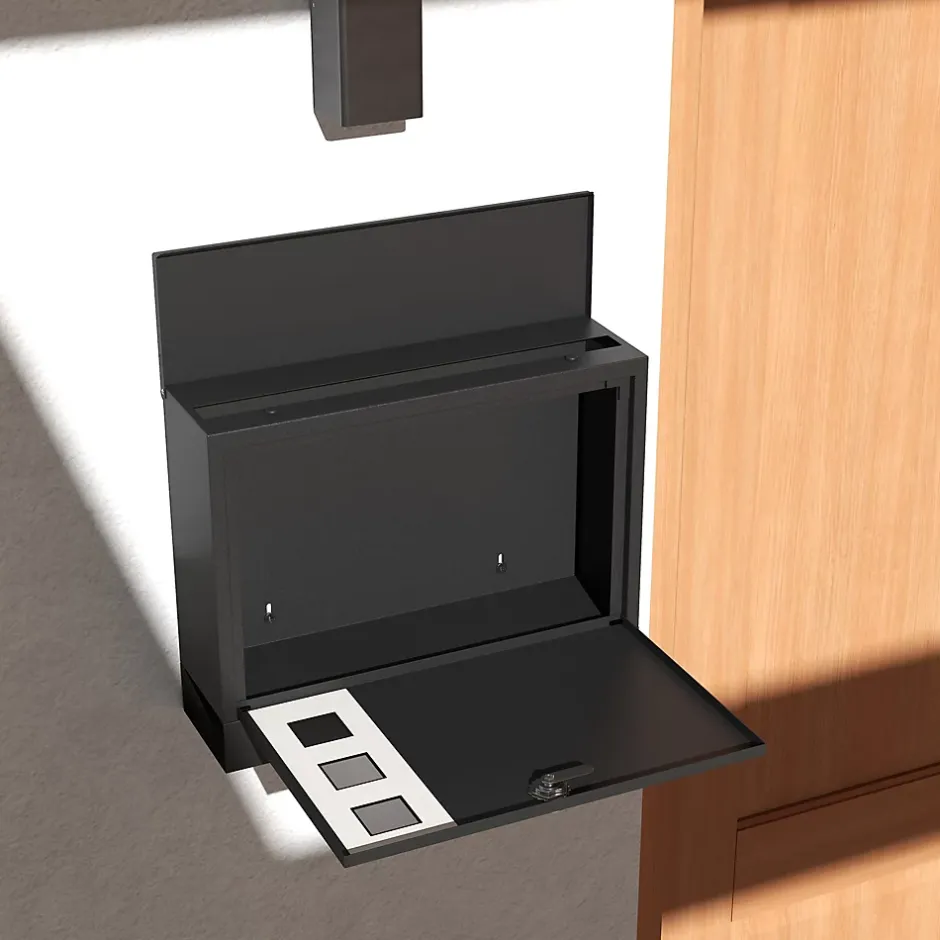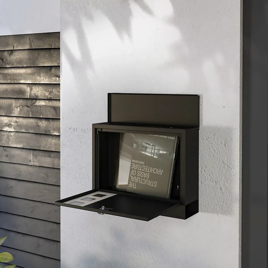 Recevez votre courrier en sécurité et avec élégance grâce à cette boîte aux lettres murale HOMCOM. Fabriquée en métal robuste, elle est parfaite pour une utilisation extérieure. Dotée d’une fente de 35 cm, elle facilite le dépôt des lettres. Son design verrouillable assure la sécurité de votre courrier.Caractéristiques :- Grand espace de rangement intérieur, la boîte aux lettres normalisée dispose d’une fente de 35 cm de long pour faciliter le dépôt du courrier- Boîte aux lettres à la poste avec trois fenêtres latérales : permettent de voir l’intérieur depuis l’extérieur- Conception sécurisée avec serrure : deux clés fournies- Tapis absorbant les bruits sur le couvercle pour réduire le bruit à la fermeture- Trous de drainage au fond de la boîte aux lettres moderne : empêchent l’accumulation d’eau- Installation simple avec le matériel inclusSpécifications :- Couleur : noir- Matériau : métal- Dimensions totales : 36,5l x 11,5P x 29H cm- Dimensions internes : 34l x 9P x 23H cm- Dimensions porte : 34l x 1P x 22H cm- Dimensions fente pour courrier : 35L x 2,5l cm- Réf. : B80-015V00BK
