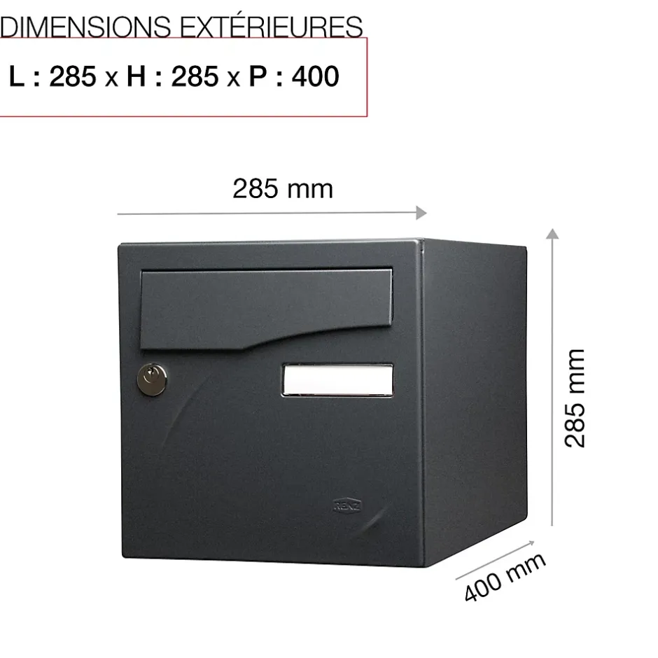 Produit sur-mesure : ce produit spécial est fabriqué à la commande. Boite aux lettres normalisée 2 portes Renz Préface avec décor. Permet de recevoir jusqu’à 45% des colis du e-commerce. Boitier avec gouttière hydrofuge permettant de maintenir le courrier au sec. Porte recouvrante équipée d’un volet acier avec atténuation de bruit pour un meilleur confort acoustique et d’un porte-nom affleurant en polycarbonate. Serrure normalisée avec 2 clés. Porte-arrière pour récupération du courrier et des colis, serrure non-normalisée avec 2 clés. Plancher ergonomique pour un retrait facile du courrier. Peinture poudre polyester sans plomb. Garantie anti-corrosion de 15 ans. Anti-vandale grade 3, résistant jusqu’à 60 kg d’arrachement. Certifiée loi handicap. Dimensions : 285x285x400mmLa boite aux lettres Préface se distingue par son décor « grain de café » et embellira votre extérieur. En plus de son design, elle offre une protection efficace contre la pluie grâce à une gouttière hydrofuge et à sa porte recouvrante dotée d’un volet en acier. Ce dernier est amorti ce qui garantit un meilleur confort acoustique. Normalisée, Préface permet de recevoir votre courrier et de petits & moyens colis, directement chez vous. Son plancher ergonomique permet un retrait facile du courrier.La boite aux lettres Préface 2 portes possède une ouverture à l’avant ainsi qu’à l’arrière. Cela permet de récupérer son courrier et ses colis depuis l’intérieur de sa résidence, si la boite est encastrée dans un mur par exemple.Photos non contractuelles, se référer au RAL pour le coloris.