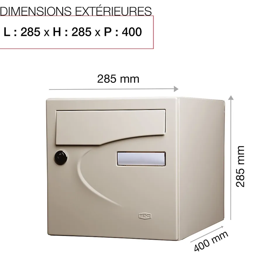 Boite aux lettres normalisée 2 portes Renz Préférence avec décor. Permet de recevoir jusqu’à 45% des colis du e-commerce. Boitier avec gouttière hydrofuge permettant de maintenir le courrier au sec. Porte recouvrante équipée d’un volet acier avec atténuation de bruit pour un meilleur confort acoustique et d’un porte-nom affleurant en polycarbonate. Serrure normalisée avec 2 clés. Porte-arrière pour récupération du courrier et des colis, serrure non-normalisée avec 2 clés. Plancher ergonomique pour un retrait facile du courrier. Peinture poudre polyester sans plomb. Garantie anti-corrosion de 15 ans. Anti-vandale grade 3, résistant jusqu’à 60 kg d’arrachement. Certifiée loi handicap. Dimensions : 285x285x400mmLa boite aux lettres Préférence bénéficie d’un design de porte simple qui s’harmonise parfaitement avec tout type d’extérieur. Pour protéger votre courrier des intempéries, elle est dotée d’une gouttière hydrofuge et d’une porte recouvrante équipée d’un volet en acier. Ce volet amorti réduit le bruit lors de son ouverture et de sa fermeture, pour un meilleur confort sonore. De plus, son plancher ergonomique facilite la récupération de votre courrier. Normalisée, Préférence permet de réceptionner son courrier et des petits & moyens colis. Le modèle 2 portes permet une récupération du courrier par l’arrière.Photos non contractuelles, se référer au RAL pour le coloris.