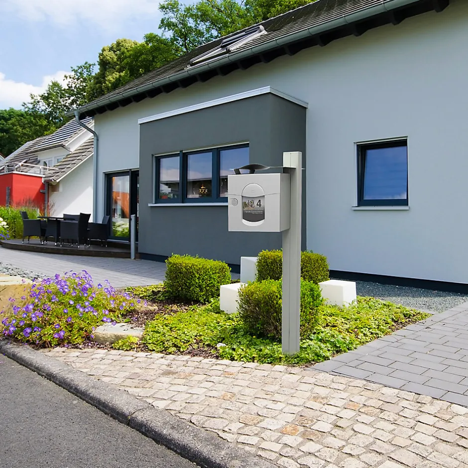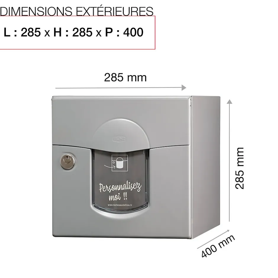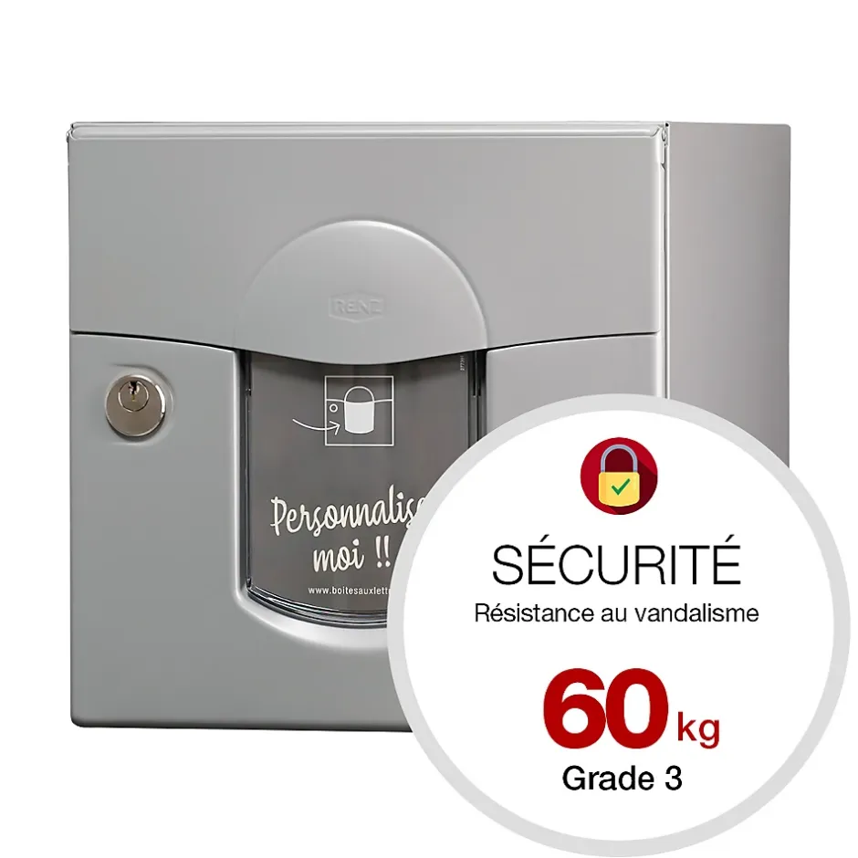 Produit sur-mesure : ce produit spécial est fabriqué à la commande. Boite aux lettres normalisé 2 portes Renz Soléa aux lignes courbes. Boitier avec gouttière hydrofuge. Porte avant galbée et recouvrante avec large volet recouvrant et grand porte-nom personnalisable sur le site de RENZ. Plancher ergonomique pour un retrait facile du courrier. Serrure agréée La Poste. Fond pré percé, facilitant la mise en place des accessoires de pose spécialement adaptés. Herse antivol renforcée. Peinture poudre polyester sans plomb. Garantie anti-corrosion de 15 ans. Anti-vandale grade 3, résistant jusqu’à 60kg d’arrachement. Certifiée loi handicap. Dimensions : 285x285x415mm. Boite aux lettres éco-conçue, tout a été étudié pour diminuer au maximum son empreinte sur l’environnement. La boite aux lettres Soléa 2 portes bénéficie d’un cycle de fabrication qui réduit au maximum son impact sur l’environnement. Avec une garantie anti-corrosion de 15 ans, elle offre une durabilité exceptionnelle. Soléa possède un design unique et original, grâce à une porte galbée et un large volet aux lignes courbes. Vous avez la possibilité de personnaliser l’étiquette de son large porte-nom. Son plancher ergonomique facilite la récupération de votre courrier. Elle est également équipée d’un fond pré-percé pour faciliter l’installation de votre boite. Sa capacité de réception permet de réceptionner du courrier, ainsi que des petits & moyens colis. À l’arrière, une seconde porte vous permet de récupérer votre courrier plus rapidement, directement dans votre propriété.Photos non contractuelles, se référer au RAL pour le coloris.