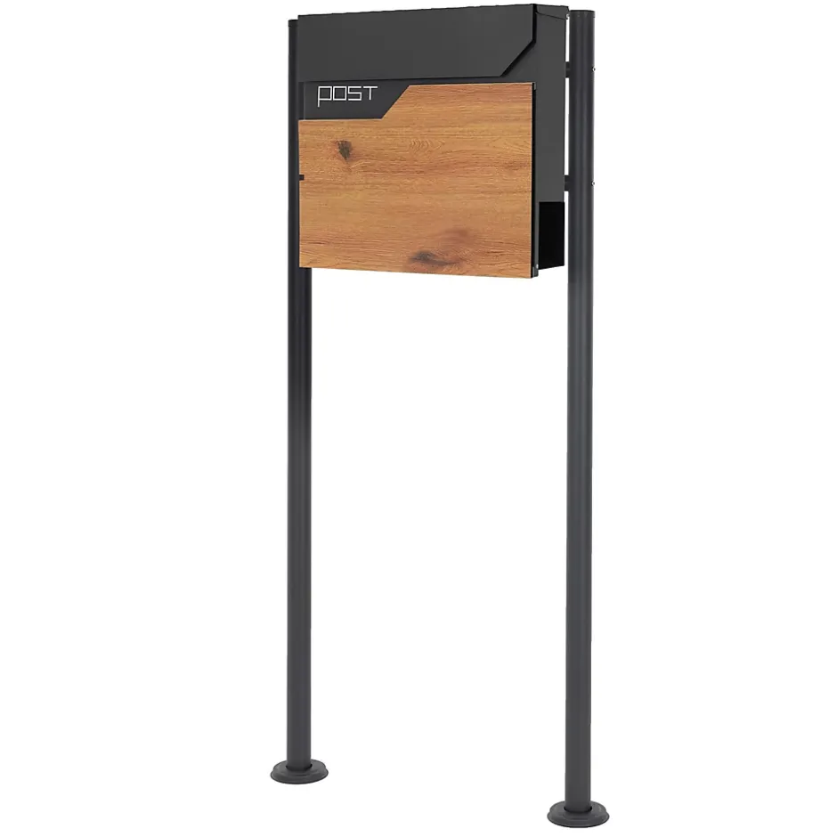 Description du produit :Boîte aux lettres :Le courrier est rangé en toute sécurité dans cette boîte aux lettres moderne. Dans cette boîte aux lettres, ton courrier sera à l’avenir rangé au sec et proprement. Grâce à l’introduction protégée par le clapet entièrement fermé, aucune humidité ou saleté ne peut pénétrer dans la boîte aux lettres. De plus, la boîte aux lettres est verrouillée par une serrure à cylindre. Cette boîte aux lettres ne peut pas seulement recevoir du courrier, mais aussi tes journaux, qui trouvent leur place dans le compartiment à journaux intégré.Cette boîte aux lettres ne séduit pas seulement par ses fonctions, mais aussi par sa façade en bois unique. Fabriquée en acier revêtu par poudre, cette boîte aux lettres résiste aux intempéries.Support :Le support de boîte aux lettres de ECD Germany est beau, moderne et adapté à ta boîte aux lettres. Il est livré avec 6 ancrages au sol adaptés pour fixer rapidement et facilement le support de boîte aux lettres dans le sol. Le support de boîte aux lettres est fabriqué dans un matériau de haute qualité et bien fini, ce qui lui confère une grande longévité. L’acier inoxydable revêtu par poudre assure la résistance du support de boîte aux lettres aux intempéries. Tu peux facilement combiner le support de boîte aux lettres avec la boîte aux lettres de ton choix.Le support de boîte aux lettres en acier inoxydable est un bel ajout à ton terrain. Un autre avantage du support de boîte aux lettres est que tu n’es pas obligé de fixer la boîte aux lettres directement à ta maison. Tu trouveras aussi bien des supports de boîtes aux lettres que des boîtes aux lettres traditionnelles et adaptées dans notre boutique en ligne à un prix avantageux.Contenu de la livraison :1 x support de boîte aux lettres, y compris 6 ancrages au solmatériel de montage et instructions de montage inclus1 x boîte aux lettres1 x kit d’accessoires (y compris 2 clés, entretoise, matériel de montage)