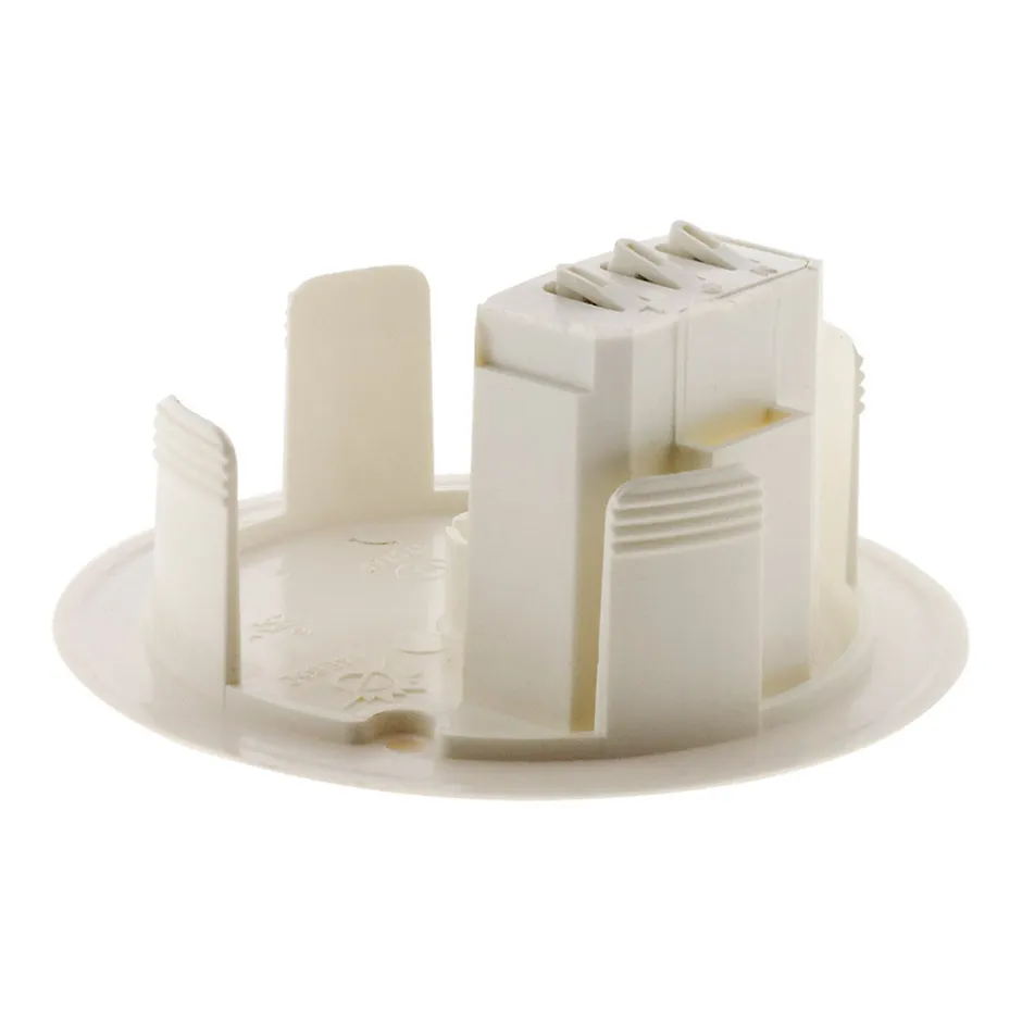 Boîte DCL point de centre à encastrer. Installation : mur creux ou placo. Permet de recevoir une fiche ou douille DCL. Fourni avec un couvercle affleurant Ø80mm. Diamètre : Ø65 mm