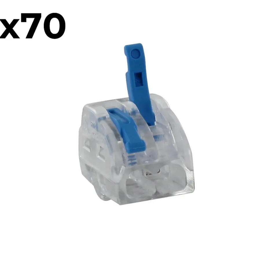 Caractéristiques de la borne à levier pour fil 0.2 mm² à 4mm² – WagoModèle : borne à levierSérie BLM 485Section des fils pris en charge : 0.2 mm² à 4 mm²Tension de référence : 450 VCourant nominal : 32 ALongueur de dénudage recommandée : 10 mmConçues avec des leviers qui permettent de verrouiller/déverrouiller chaque entréeEn boite de 30, 50 ou 70Avec 2/3/5 entréesLa borne à levier série BLM 485 est une solution idéale pour les installations électriques nécessitant des connexions sûres et pratiques.Elle prend en charge des fils de 0,2 mm² à 4 mm², offrant ainsi une grande polyvalence dans différents types de câblage. Grâce à sa capacité à supporter une tension de 450 V et un courant nominal de 32 A, cette borne garantit des performances fiables dans diverses applications.Avec une longueur de dénudage recommandée de 10 mm, elle assure une connexion optimale et sécurisée. Conçue avec des leviers pratiques permettant de verrouiller et déverrouiller facilement chaque entrée, cette borne facilite une installation rapide et sans erreur.Elle est disponible en boîtes de 30, 50 ou 70 unités, offrant ainsi des solutions adaptées à des projets de toutes tailles. Enfin, avec des configurations de 2, 3 ou 5 entrées, elle répond à divers besoins de câblage, ce qui en fait un choix parfait pour des travaux professionnels ou domestiques.
