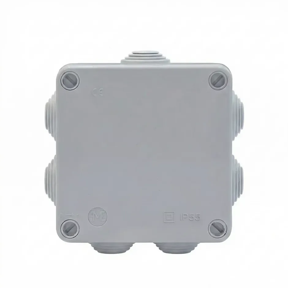 Boîte de dérivation extérieure avec 7 passe-câbles + vis et système de verrouillage intégré.