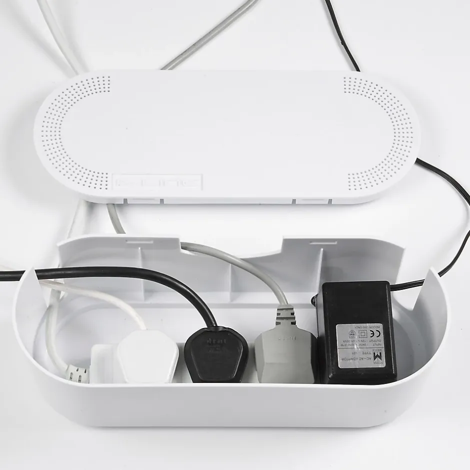 Boîte de rangement de câbles blanc D-Line L. 325 x l. 125 mm, bloc 4 prises