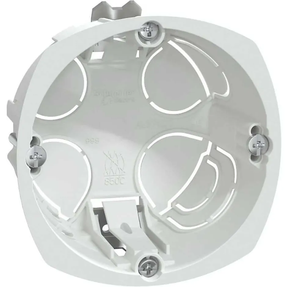 Boîte d’encastrement Multifix IMT35914 Schneider Electric, 1 poste, Ø 67 mm, profondeur 40 mm. Conçue pour une installation murale sécurisée des mécanismes électriques, résistante et facile à monter. – Schneider – Référence : IMT35914 – Boîte d’encastrement – 1 poste – Ø 67 mm – Profondeur 40 mm – Multifix – IMT35914 – Schneider
