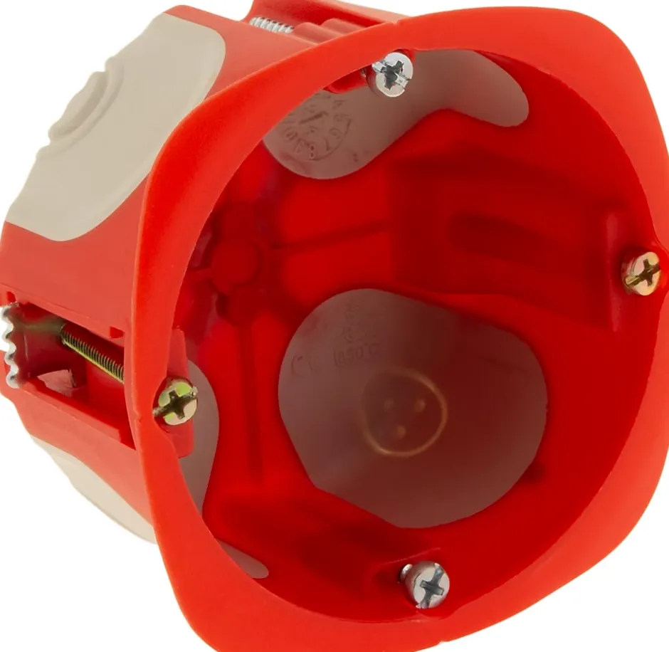 - Boîte d’encastrement étanche à l’air et multi matériaux (cloisons sèches et murs pleins), développée pour permettre une parfaite compatibilité avec les appareillages ainsi qu’une étanchéité optimale au niveau de la collerette et les entrées des conduits