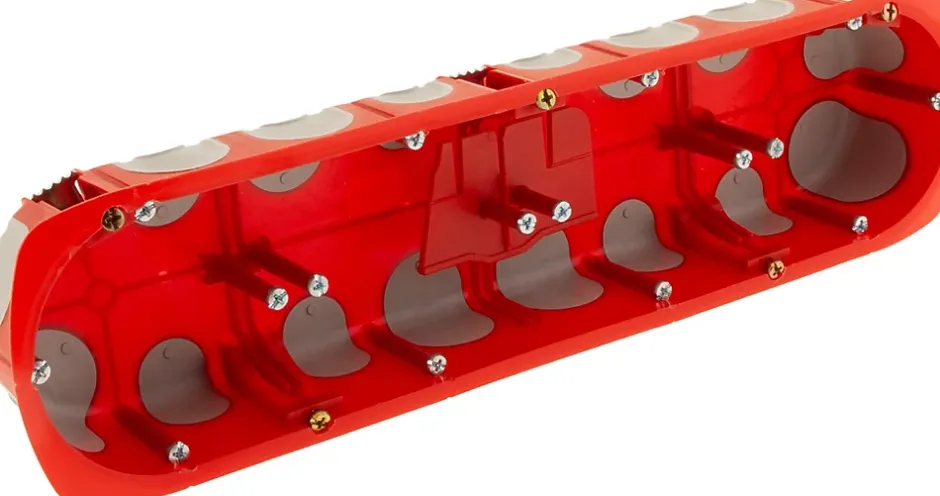 - Boîte d’encastrement étanche à l’air et multi matériaux (cloisons sèches et murs pleins), développée pour permettre une parfaite compatibilité avec les appareillages ainsi qu’une étanchéité optimale au niveau de la collerette et les entrées des conduits