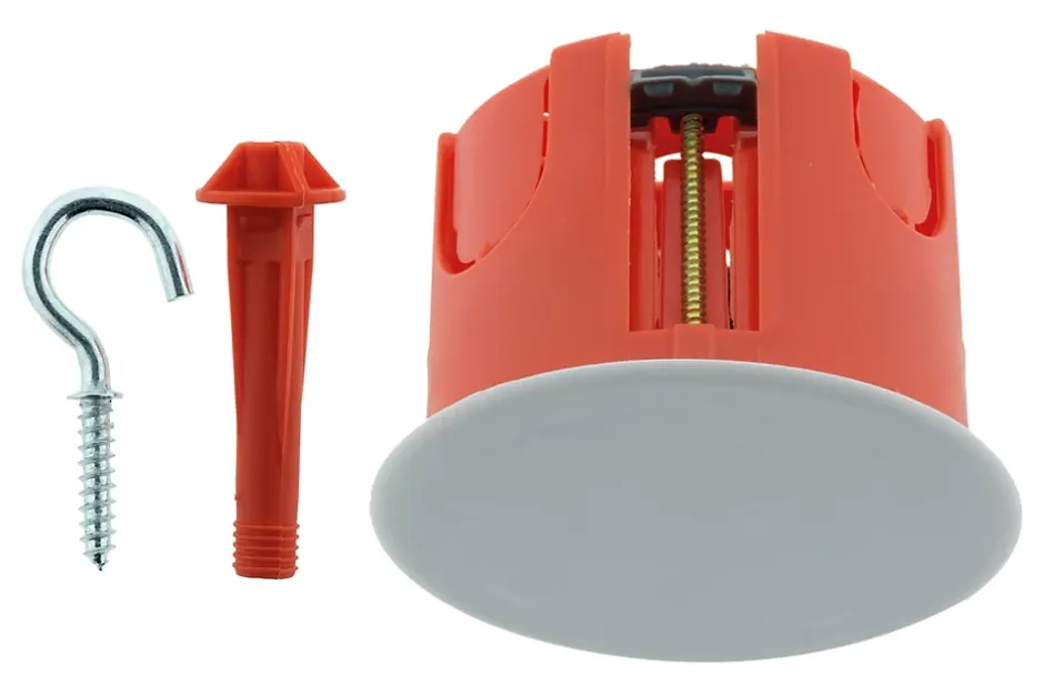 Caractéristiques de la boîte point de centre murs creux placo Ø65x50mm + crochet – Zenitech :Modèle : boîte point de centre murs creux placoPour installation luminaire au plafondLivrée avec crochetCharge maximale supportée 25kgHaute résistance au feu 850°Dimensions extérieures Ø65mm et profondeur 50mmDiamètre de perçage Ø67mmLa boîte point de centre murs creux placo est spécialement conçue pour l’installation de luminaires au plafond, offrant une fixation sécurisée grâce à son crochet inclusElle est capable de supporter une charge maximale de 25kg, ce qui la rend idéale pour des installations lourdes et robustes. Avec une haute résistance au feu de 850°, elle garantit une sécurité accrue dans tous vos travaux d’électricité.Ses dimensions extérieures de Ø65mm et sa profondeur de 50mm assurent une installation discrète et pratique dans des cloisons placo. Le diamètre de perçage de Ø67mm facilite son montage, offrant ainsi une solution fiable et durable pour vos projets d’éclairage
