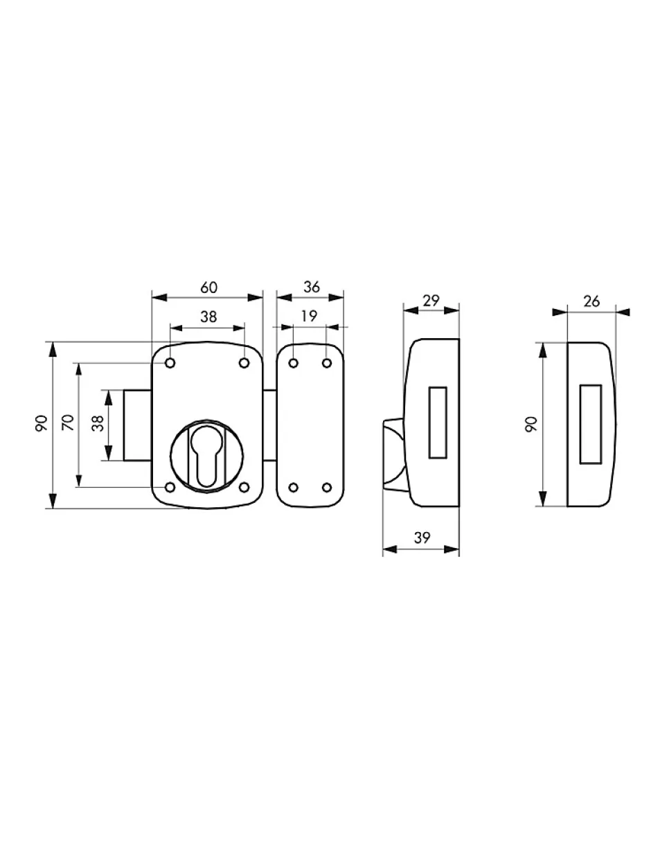 - Dimensions compactes L.90 x l.60 mm, poids 520 g, adapté aux portes avec cylindre profil européen.