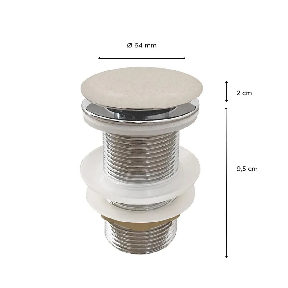 Points forts : Design sophistiqué et harmonieux/Mécanisme clic-clac pratique/Matériau durable et résistant/Deux coloris intemporels Bonde clic-clac en grès JAMES : élégance et durabilité pour votre vasqueAjoutez une touche de sophistication à votre salle de bain avec la bonde clic-clac en grès JAMES. Conçue pour s’intégrer parfaitement aux vasques en grès, elle offre un design harmonieux et une finition raffinée. Son mécanisme clic-clac permet une utilisation fluide et intuitive : une simple pression suffit pour l’ouvrir ou la fermer. Sans trop-plein, elle assure une évacuation efficace et s’adapte aux vasques compatibles. Disponible en deux coloris intemporels – beige authentique et noir profond, elle complète parfaitement une salle de bain au style minimaliste, moderne ou authentique. Associez-la aux vasques compatibles pour une salle de bain chic et fonctionnelle. Informations: Contenu du colis : bonde seuleMatière : Grès Dimensions: Bonde : Largeur : 6,4 cm/Hauteur : 2 cm /Profondeur : 6,4 cm Vendeur: Mob-In est basée en France près de Lille. Spécialiste de l’univers de la salle de bain & du rangement. Nous mettons beaucoup de cœur à la fabrication de nos produits, afin de vous proposer des modèles originaux, de qualité et au juste prix.