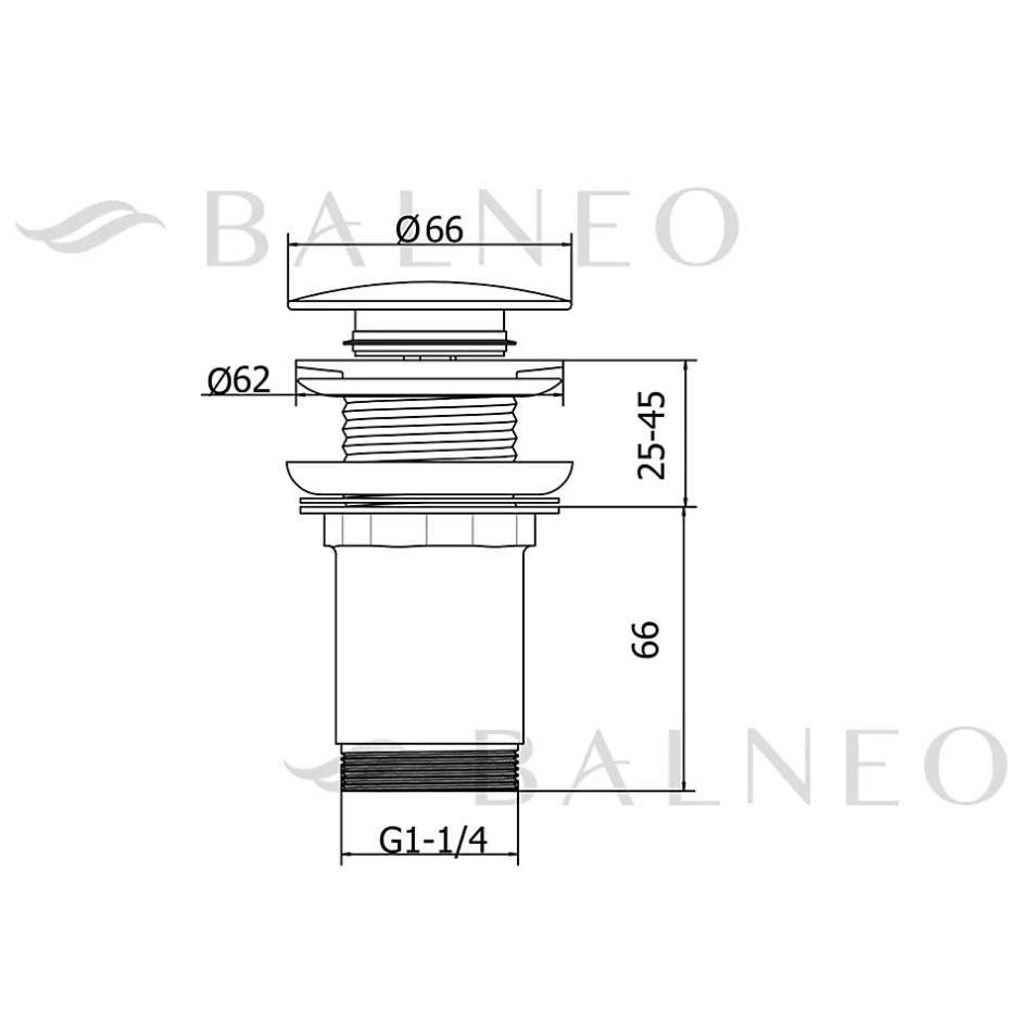 Données techniques: Utilisation : pour lavabos sans trop-plein Type : Sans trop-plein Trop-plein : Non Matériau : Laiton Disponible en : Chrome, or, noir Forme : Ronde Soupape d’ouverture : Oui Ajustement horizontal : Non Diamètre du filetage : G1 1/4 Ce produit est-il universel (pour tout type de lavabo) ? Oui, universel pour les lavabos sans trop-plein.Avantages : 100% de résistance à la corrosion grâce à la conception en laiton ouverture et fermeture faciles utilisation de joints en silicone, plus durables convient à de nombreux types de lavabos utilisation de 4 joints, dont un joint de guidage facile à nettoyer fabriqué à partir de matériaux durables et résistants pas de risque d’obstruction de l’évacuation ; la conception empêche les grosses pièces de pénétrer dans le tuyau d’évacuation le bouchon est également doté d’un joint en plomb dur supplémentaire, qui répartit uniformément le joint en silicone, garantissant ainsi l’étanchéité du bouchon