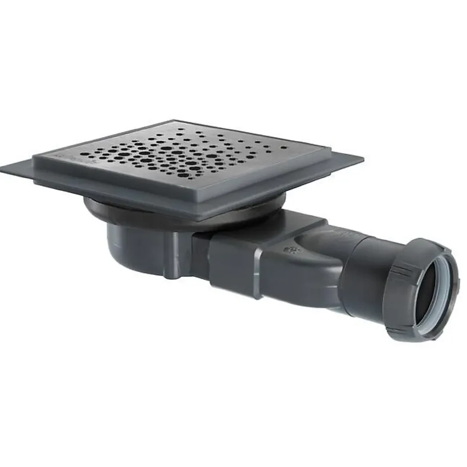 - Bonde à chaper avec un siphon sec à membrane, avec seulement 40 mm de hauteur et une sortie orientable pour s’adapter au tuyau d’évacuation