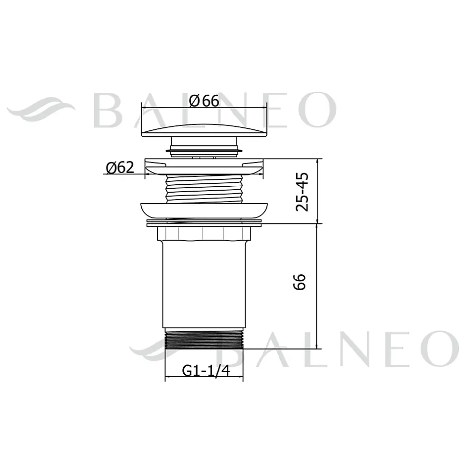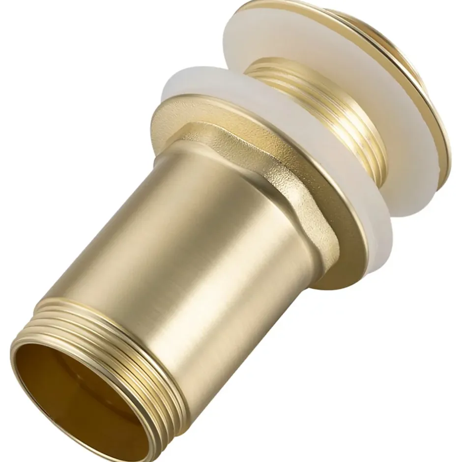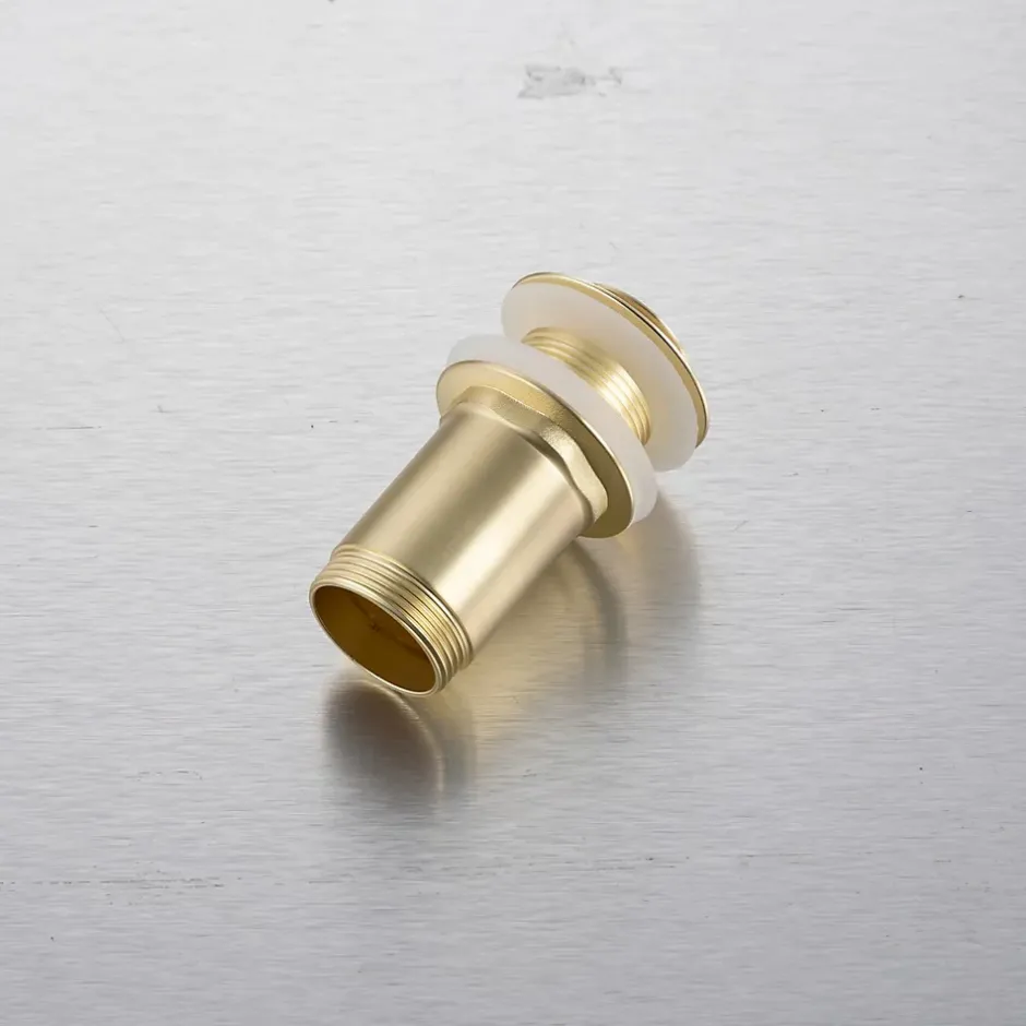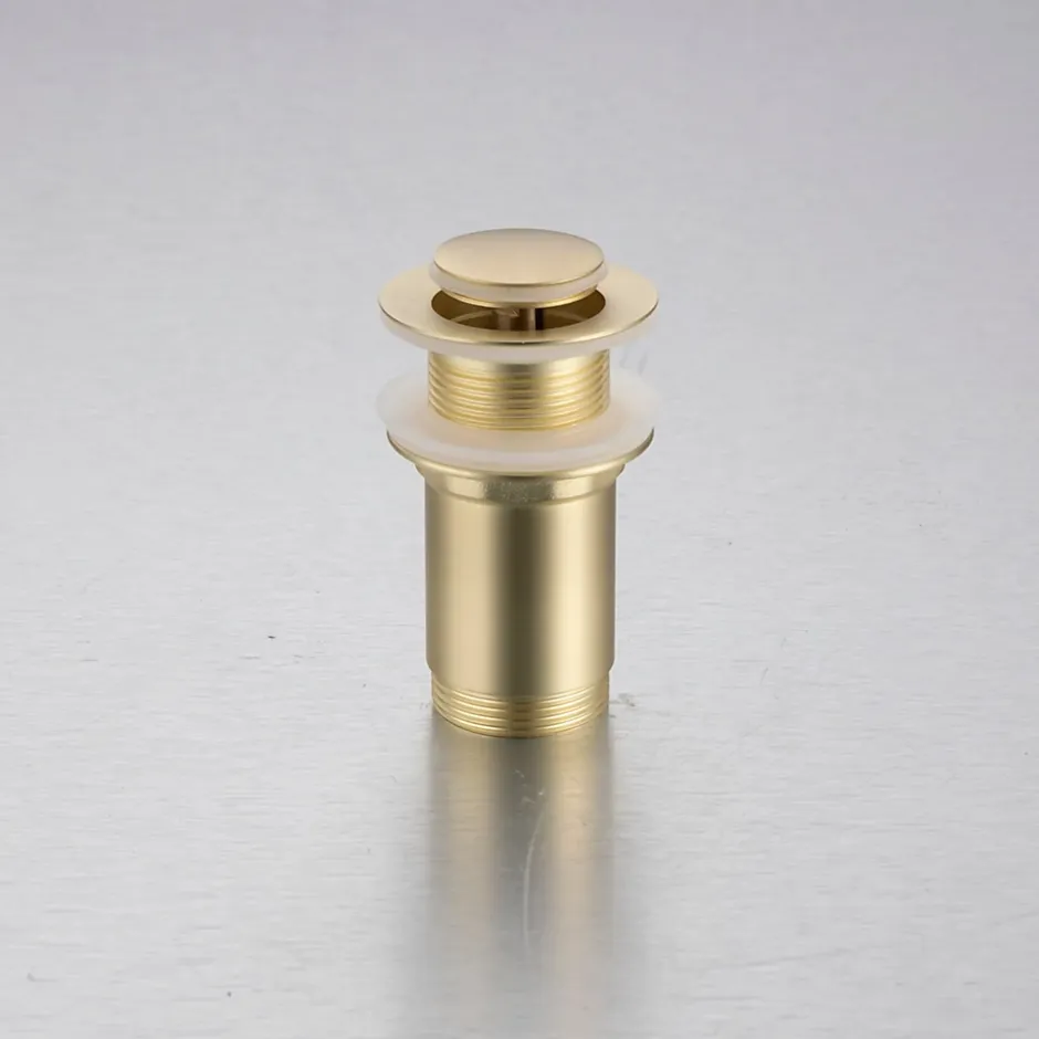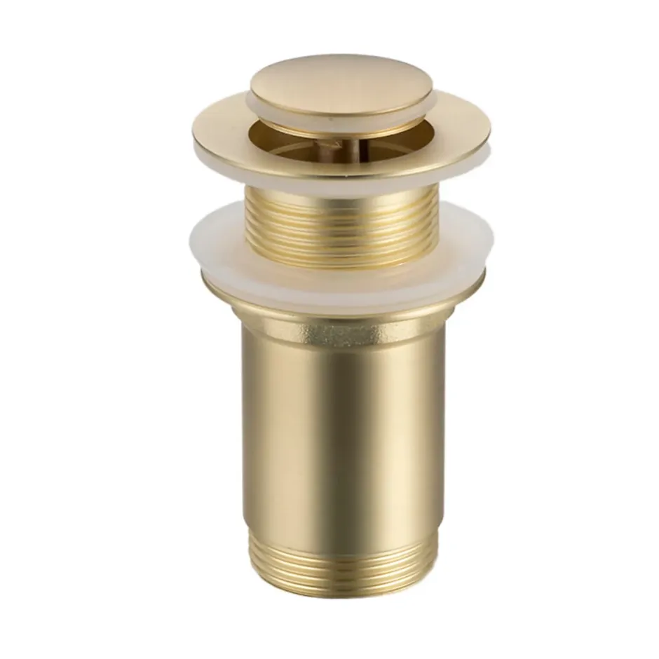 100 % anticorrosion : laiton durable. Ouverture/fermeture faciles (push-open). 4 joints silicone (dont guide rigide) assurant étanchéité optimale. Anti-bouchage : gros débris bloqués. Entretien simplifié : nettoyage rapide. Universel : s’adapte à 99 % des vasques.Salle de bains uniformeCoordonnez facilement tous vos accessoires pour une teinte identique.Avec ou sans trop-plein ? Avec trop-plein : évacue l’eau excédentaire, idéal pour vasques grand volume. Sans trop-plein : design épuré, installation simplifiée.Compatibilité & maintenanceModèle universel : vérifiez la présence du trop-plein. Mécanismes de rechange disponibles.Caractéristiques techniques Usage : vasques sans trop-plein Diamètre : 38 mm Matériau : laiton, Brushed Gold Forme : ronde, filetage G1 1/4 Valve : push-open Réglage horizontal : non