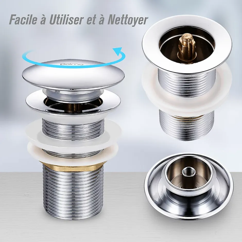 Transformez votre salle de bain avec la bonde de lavabo TODOT Push Open sans Trop-Plein. Fabriquée en laiton de haute qualité avec une finition chromée, cette bonde allie style, durabilité, et praticité. Son mécanisme pop-up permet une utilisation fluide et son design étanche garantit un environnement propre et sans fuites. Avec une installation simplifiée et un design élégant, c’est le choix idéal pour les lavabos modernes.