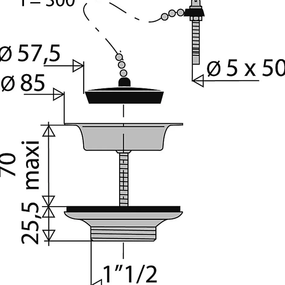 pour évier grés Ø 60 mmSortie filetée 1 »1/2 mmEn laiton – Grille inoxLivrée avec bouchon et chaînette