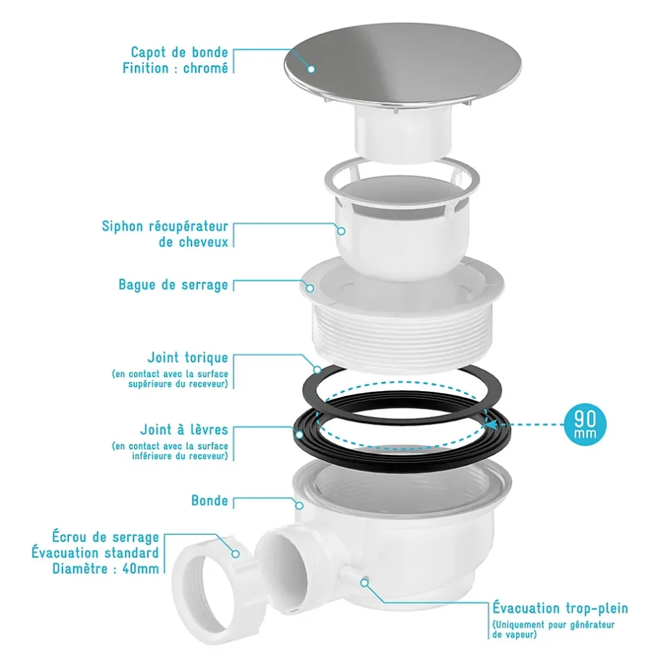 - Diam. de la bonde 90 mm