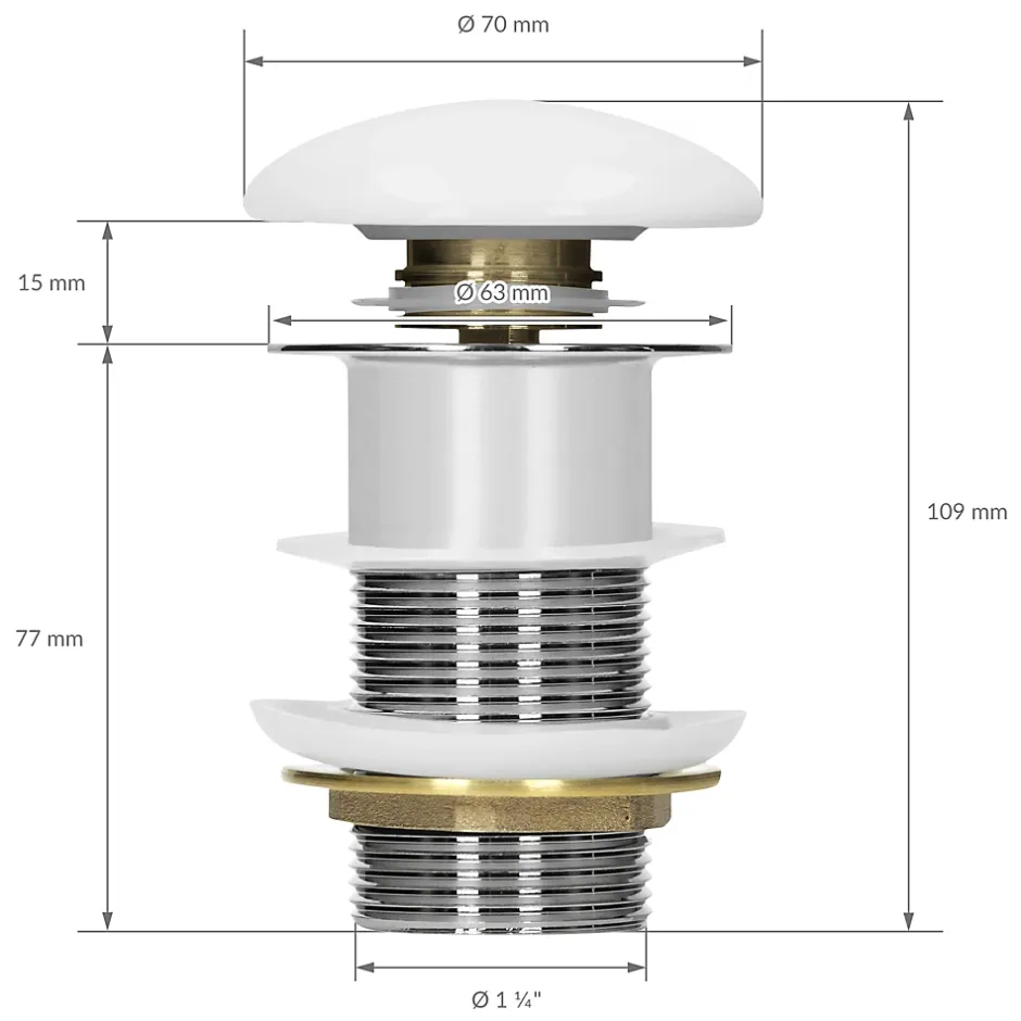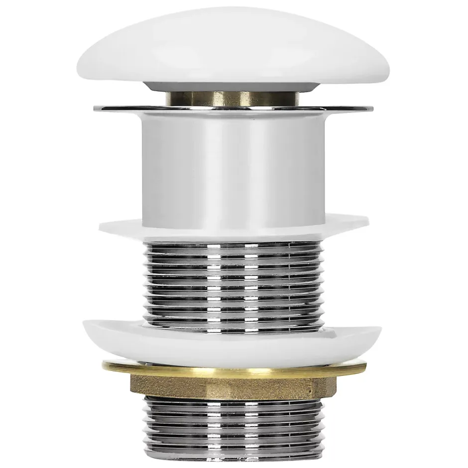 Description du produit:Vous pouvez ouvrir et fermer le robinet de vidange LuxeBath d'une simple pression du doigt sur le couvercle. Cette technologie dite Push-Open a été développée pour pouvoir comprimer le lavabo le plus rapidement et le plus facilement possible. Le système de vidage s'installe facilement dans n'importe quel lavabo et est prêt à l'emploi. La taille unique vous permet de combiner facilement la bonde avec le lavabo de votre choix. Le bouchon se dévisse facilement, ce qui facilite le nettoyage.Une installation facile.1. placez la rondelle supérieure sur le trou d'évacuation de l'évier.2. placez le corps principal dans l'évier.3. placez la rondelle inférieure sur la partie filetée.4. serrez la pièce de verrouillage.Remarque: Convient aux lavabos sans trop-plein !Caractéristiques:Installation sans outilConvient universellement à presque tous les lavabosCéramique de haute qualité et acier inoxydable de haute qualitéGarniture de vidage pour lavabos sans trop-pleinTechnologie Push-Open pour une utilisation confortableLivraison:1 x Garniture de vidage pour lavabos sans trop-pleinInformation technique:Couleur : blanc, matPoids : environ 0,25 kgMatériau : céramique, acier inoxydableDiamètre de la tête en céramique : environ 70 mmDiamètre de l'écoulement : dimension d'installation standard 1 1/4 pouce (41,2 mm) mâleHauteur : environ 109 mmRemarque: Le couvercle en céramique blanche peut varier de quelques millimètres, c'est une particularité de la fabrication de la céramique causée par l'humidité et la température du four. Néanmoins, cette variation de taille n'affecte pas la fonctionnalité ou le fonctionnement de la bonde.