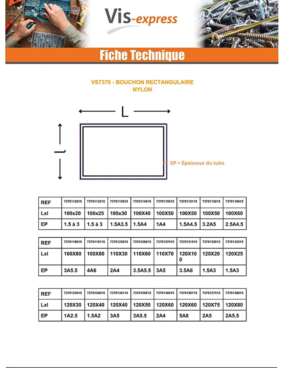 Bouchon rectangle pour tube 100X50 épaisseur tole du tube 1.5 à 4.5 nylon noirMatiere = NylonAutre références : 3617501520530 3663072556188