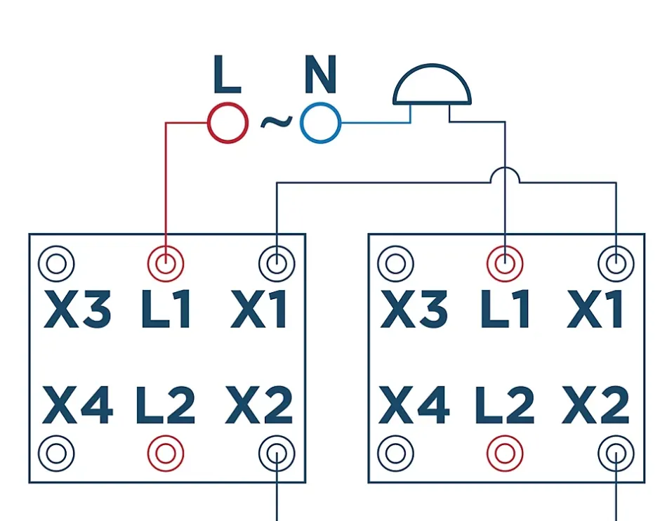 - Installation facile grâce aux bornes automatiques enfichables avec code couleur : aucun outil nécessaire