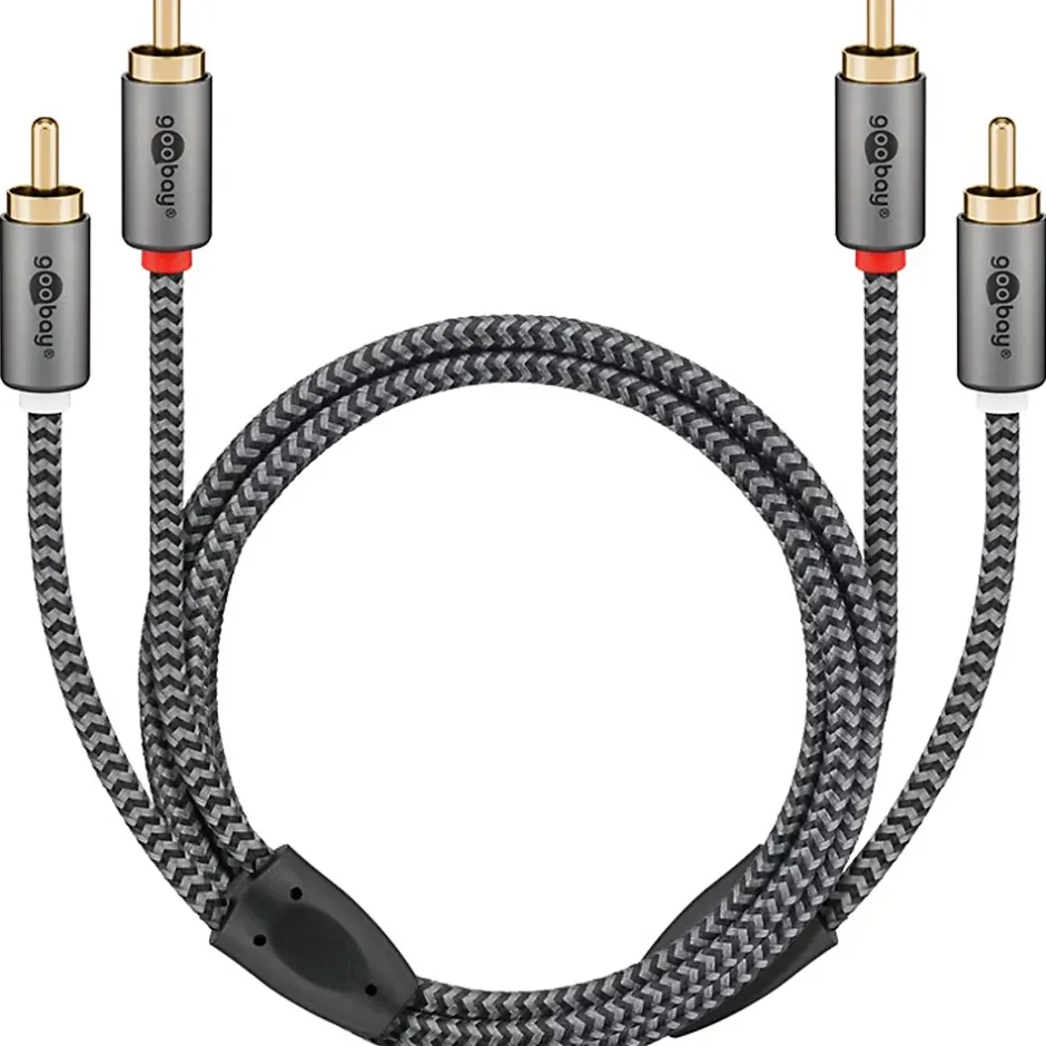 Câble audio 2 RCA mâles gold nylon tressé 2m La série Plus de avec des connecteurs métalliques fins et élégants. Le câble RCA stéréo est polyvalent – que ce soit sur un subwoofer, un lecteur Blu-ray, une table de mixage ou une chaîne hi-fi. Les fiches robustes et de haute qualité sont adaptées aux connexions et déconnexions fréquentes. – La gaine textile tressée du câble des écouteurs assure un toucher agréable et ménage les surfaces sensibles. – Le design fin permet une connexion facile, même lorsque les appareils sont protégés par une housse de protection. – Les fiches s’enclenchent de manière sûre et garantissent une fixation solide dans l’appareil, sans glisser. – Les fiches plaqués or préviennent la corrosion et sont particulièrement durables. – Le câble 2 RCA stéréo garanti une transmission optimale du signal. Caractérisques : – Connecteur A : 2x RCA mâle – Connecteur B : 2x RCA mâle – Longueur : 2m – Matériau conducteur : 100% cuivre – Matériau des connecteurs : Métal (Plaqué or) – Section : AWG 28 – Diamètre externe : 3.3 mm – Blindage : Oui – Couleur : Gris / Noir