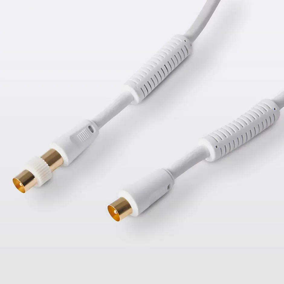 Câble coaxial Mâle / Femelle + adaptateur Mâle / Mâle blanc Blyss Or, 5 m