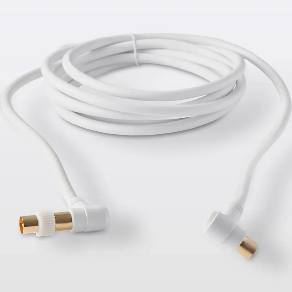 Câble coaxial Mâle / Femelle + adaptateur Mâle / Mâle coudé blanc Blyss Or, 3 m