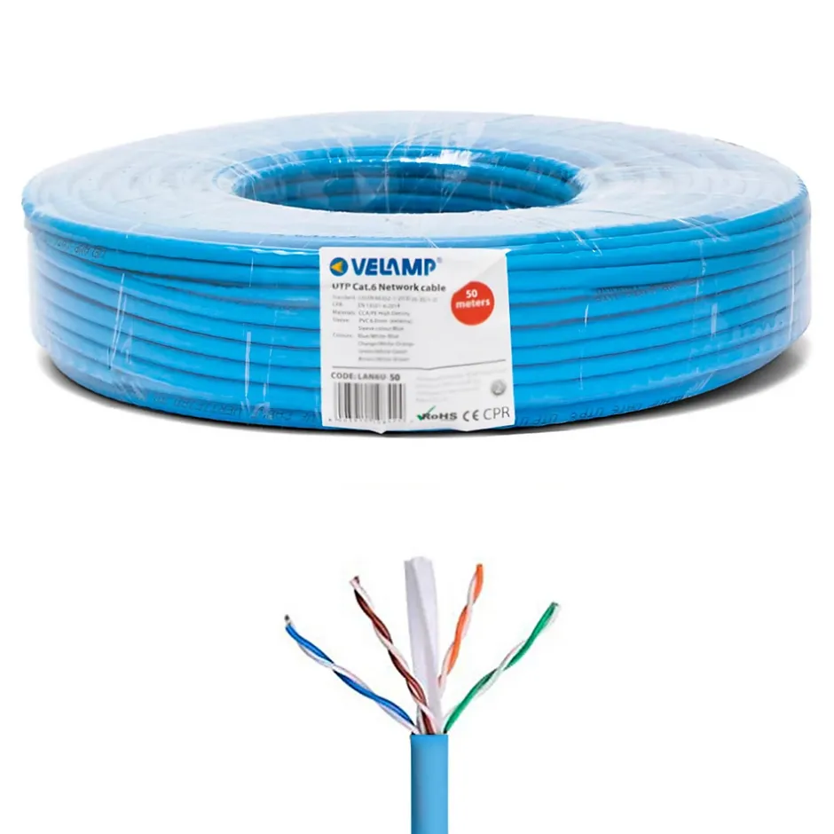 Longueur : 50 mètres Couleur : Bleu Catégorie 6 UTP. FIN ET LÉGER – Avec des fils CCA, les câbles VELAMP sont plus légers que ceux contenant du cuivre massif. Avec des dimensions AWG24 (environ 51 mm de diamètre), nos câbles s’intègrent facilement dans les endroits exigus. Idéal pour les rainures métalliques car ils laissent beaucoup d’espace pour la ventilation. 4 paires torsadées : Bleu/Blanc-Bleu ; Orange/Blanc-Orange ; Vert/Blanc-Vert ; Marron/Blanc-Marron. SANS INTERFÉRENCE – Les câbles à paires torsadées non blindées (UTP) sont couramment utilisés pour leurs propriétés de suppression du bruit. Le câble Ethernet TECNID minimise les interférences qui affectent négativement la qualité du signal. Sans mise à la terre requise, nos câbles sont faciles à installer pour une utilisation à la maison ou au bureau. TRANSMISSION DE DONNÉES À HAUTE VITESSE – Convient aux réseaux câblés pour la maison et le bureau pour se connecter à Internet via un modem, un routeur, un commutateur, un appareil Wi-Fi, un amplificateur de signal ou un commutateur. Notre câble fournit des connexions stables sur tous vos appareils tels qu’un ordinateur, une caméra de sécurité, un ordinateur, un PC, une console de jeu ou toute connexion au sein d’un réseau LAN. AJOUTEZ SIMPLEMENT LES CONNECTEURS – En installant des connecteurs RJ45 aux deux extrémités, le câble TECNID connectera universellement votre ordinateur, ordinateur portable, serveur à un routeur ou à un réseau local filaire (LAN). Tout appareil électronique peut utiliser ce câble, à condition qu’il dispose d’un port RJ45. Cela comprend Xbox, PS4, HDTV, commutateurs, imprimantes.