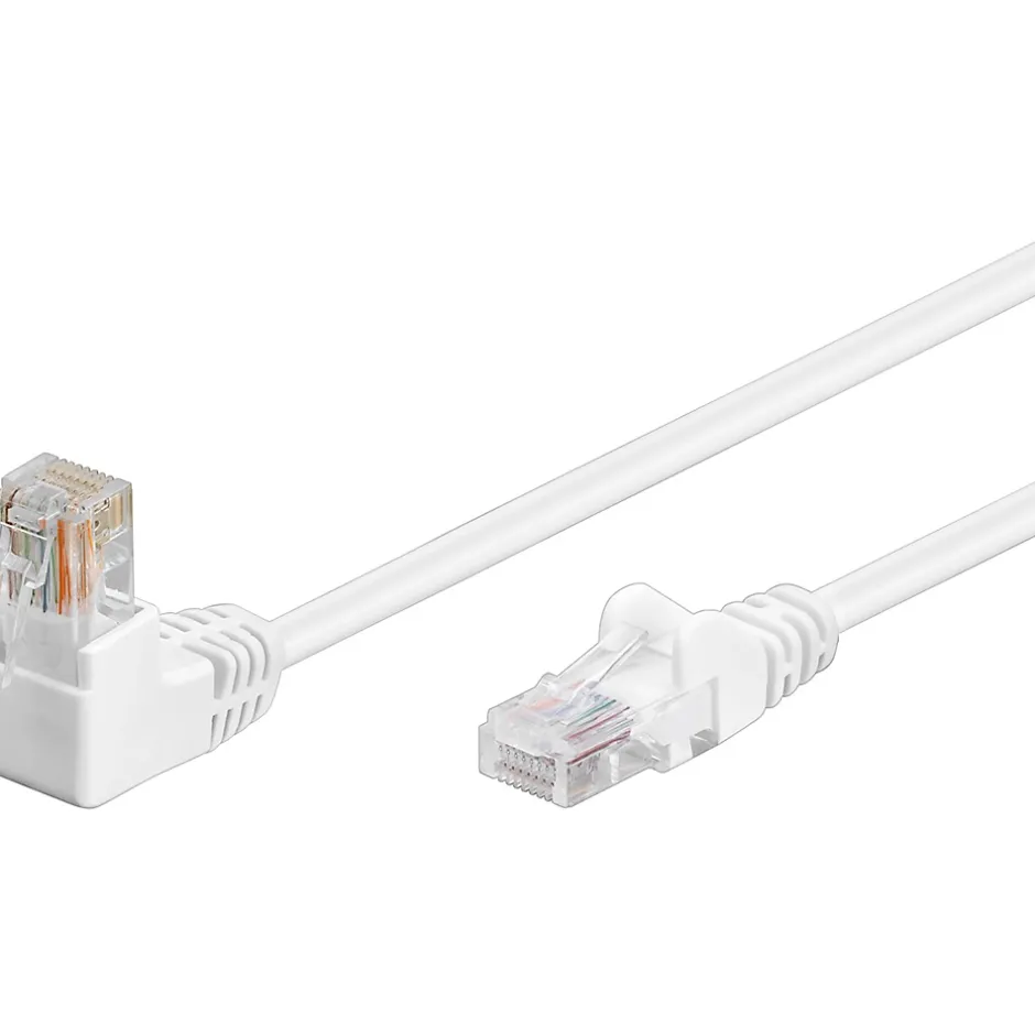 Câble Ethernet CAT5e 0.25m coudé U/UTP blanc – 1x RJ45 coudé 90°Ce câble réseau RJ45 coudé est idéal pour les installations dans les espaces confinés. Caractéristiques : – Connecteur A : RJ45 mâle – Connecteur B : RJ45 mâle coudé 90° – Blindage : U/UTP – Non blindé – Couleur : Blanc – Diamètre de la gaine : 4.9 mm – Gauge : AWG 26/7 – Matériau : CCA – Catégorie : CAT5e – 100Mbps