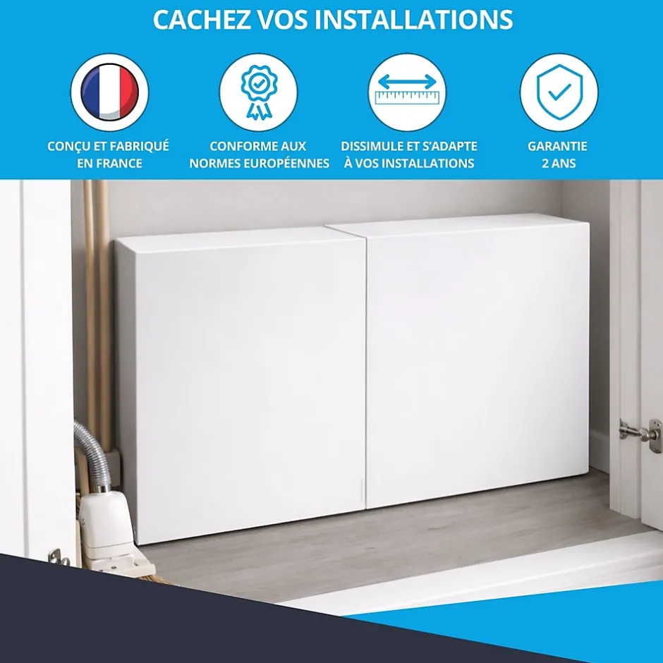 Habillage pour nourrices – Idéal pour dissimuler élégamment les tuyaux et canalisations verticales. Facile et rapide à installer, il assure une finition propre et esthétique de vos installations. Vérifiez attentivement les dimensions extérieures et intérieures pour assurer la compatibilité avec votre installation. Avantages :✅ Fabrication 100% française✅ Rapide à poser et à retirer (2 vis invisibles suffisent à le fixer)✅ Gabarit de pose intégré au produit. Il suffit d’un crayon et d’une perceuse✅ Discret, plus économique qu’un habillage bois, il résiste à l’humidité✅ Réglable en longueur✅ Matière recyclable : un produit conçu pour durer tout en respectant l’environnementCaractéristiques techniques : Dimensions hors-tout : H. 650 x L. 605 à 1150 x P. 150 mm Taille : 4 Matière : Acier Peinture thermolaquée grain cuir Blanc RAL 9003 Poids : 8,9 kg Epaisseur : 0,8 mm Également disponible en d’autres dimensions