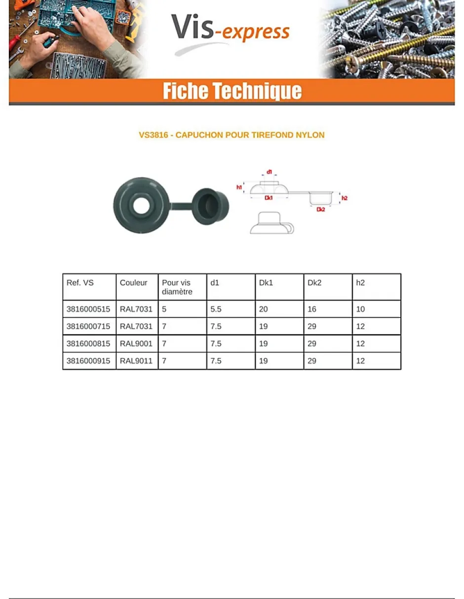 Cache Tirefond De 7 RAL9001 blanc cremeDiametre = 7, Famille De Produits = Cache VisAutre références : 3617500143778 3663072486034