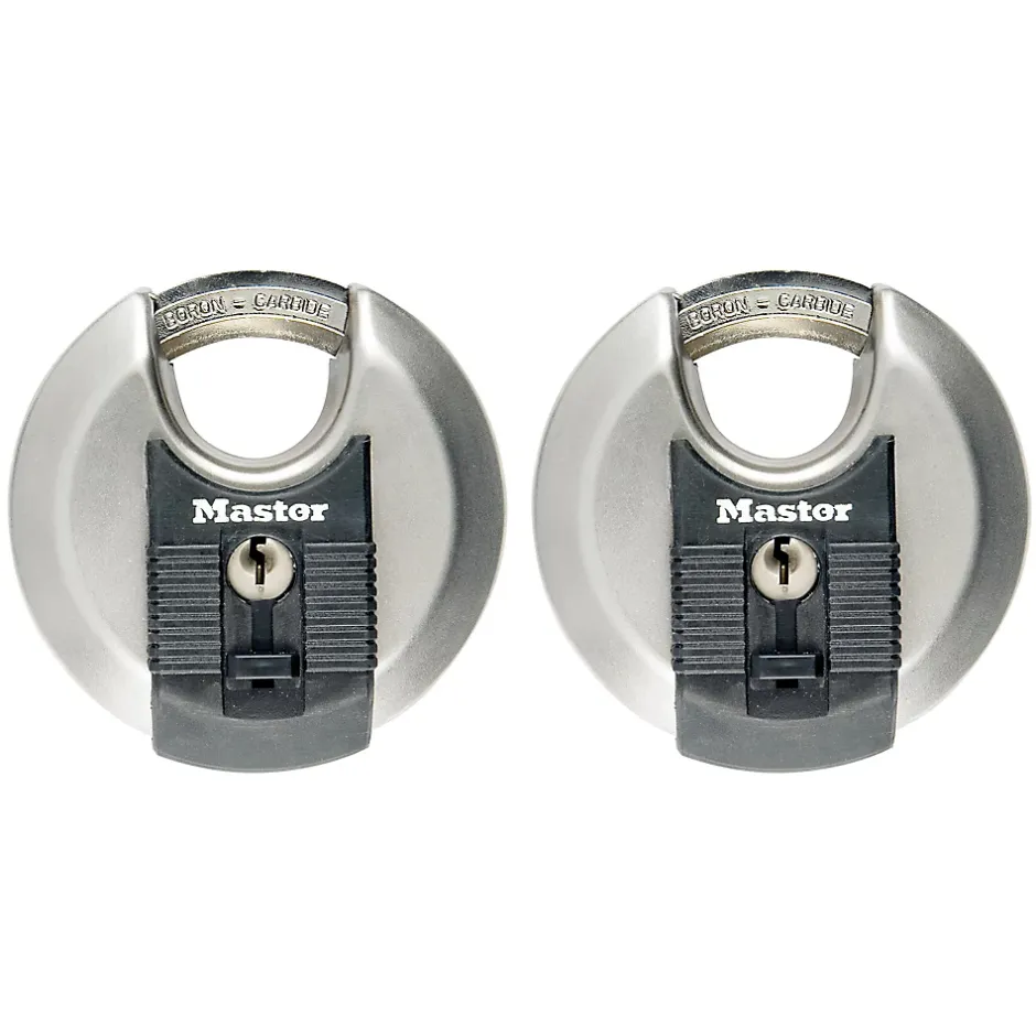 Lot de 2 cadenas à clé Master Lock Excell M40EURT disque en acier inoxydable Ø70 mm hauteur de l’anse 16 mm