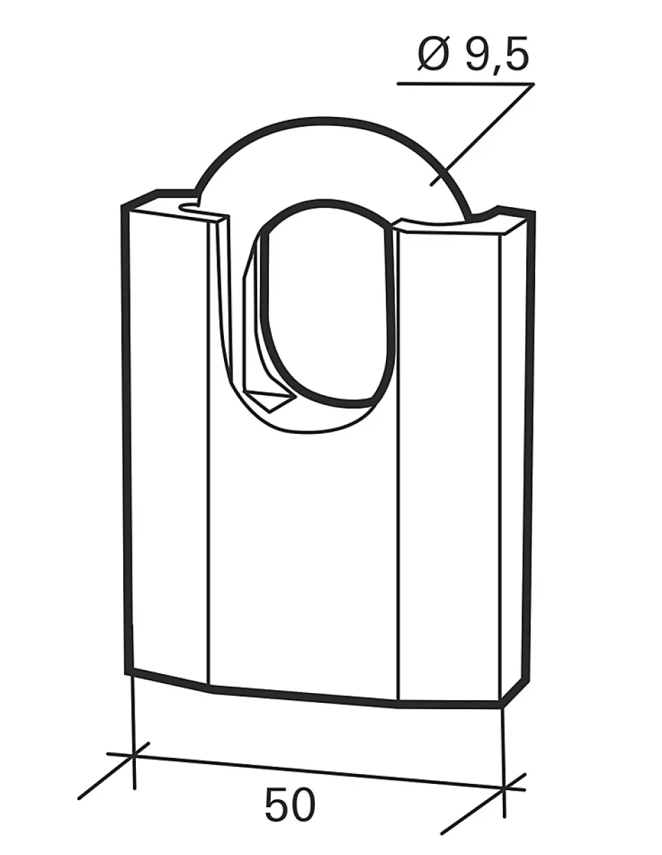 Corps acier. Anse acier cémenté nickelé. Mécanisme à goupilles. Double verrouillage par billes. Trou d’écoulement d’eau. 3 clés réversibles.