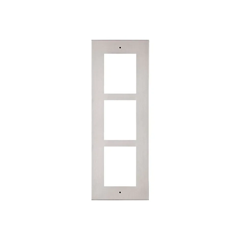 Cadre d’encastrement 3 modules du Verso IP – 9155013 – 2NLe cadre d’encastrement 3 modules 9155013 de 2N permet l’installation du système de visiophone Helios Verso IP. Cette plaque de surface de couleur blanche est d’une grande élégance. Il est parfait pour créer un décor intemporel qui plaira certainement à vos visiteurs. Le fait qu’il peut accueillir 3 modules vous donne accès à plus d’options pour contrôler l’accès à votre immeuble. Comme l’interphone IP est modulaire, il vous appartient de choisir les modules qui vous conviennent : lecteur Bluetooth, lecteur RFID, écran tactile ou clavier. Deux cadres d’encastrement de ce type peuvent aussi former un système unique avec 6 modules.Ce cadre d’encastrement 3 modules représente le côté visible de votre interphone. L’unité doit être complétée par la boîte d’installation 9155016. Les deux accessoires forment un unique boîtier robuste pour recevoir les modules.Cette plaque fait 130 mm de large, 361 mm de hauteur et 5 mm de profondeur. Les dimensions des cases prévues accueillir les modules sont parfaitement adaptées au format des modules d’extension disponibles pour le système Verso IP.Pour le montage de l’ensemble, il vous suffit d’ajouter les modules et d’assembler les différentes pièces. Les accessoires pour la fixation sont livrés avec le produit. Vous bénéficiez également d’un manuel d’installation pour vous guider. Il est disponible en ligne en libre téléchargement. Caractéristiques principales :Type d’accessoire : Cadre d’encastrement Verso IPNombre total de prises : 3Couleur : BlancLargeur : 130 mmHauteur : 361 mmProfondeur : 5 mmPoids de l’emballage : 0,772 kg